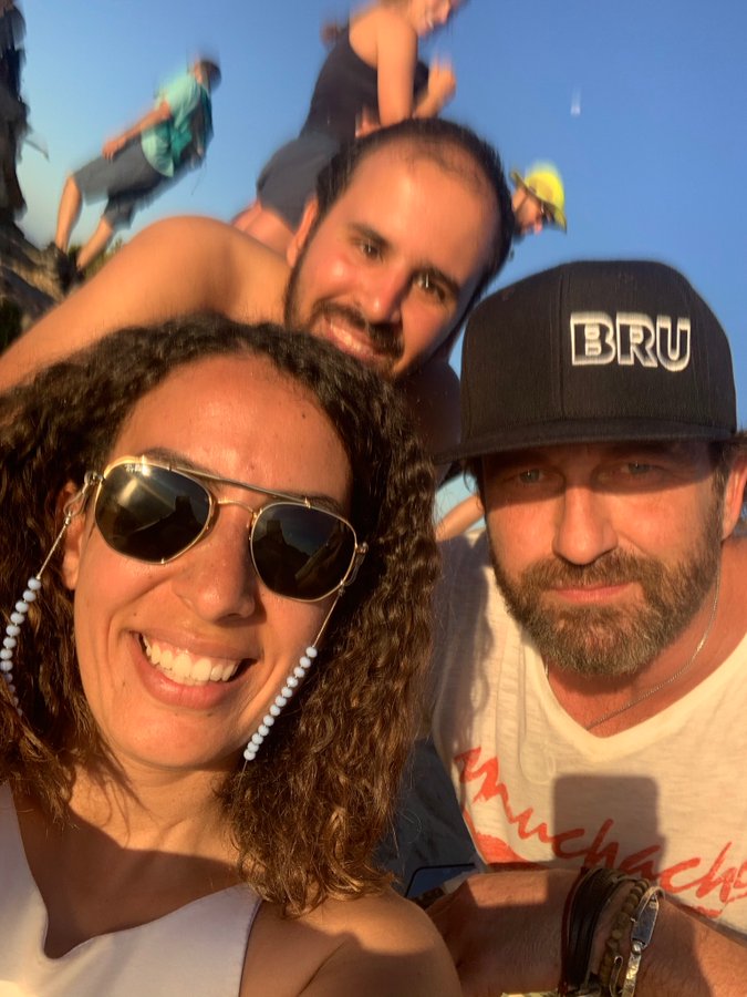 Gerard Butler shirtless surfing hugging