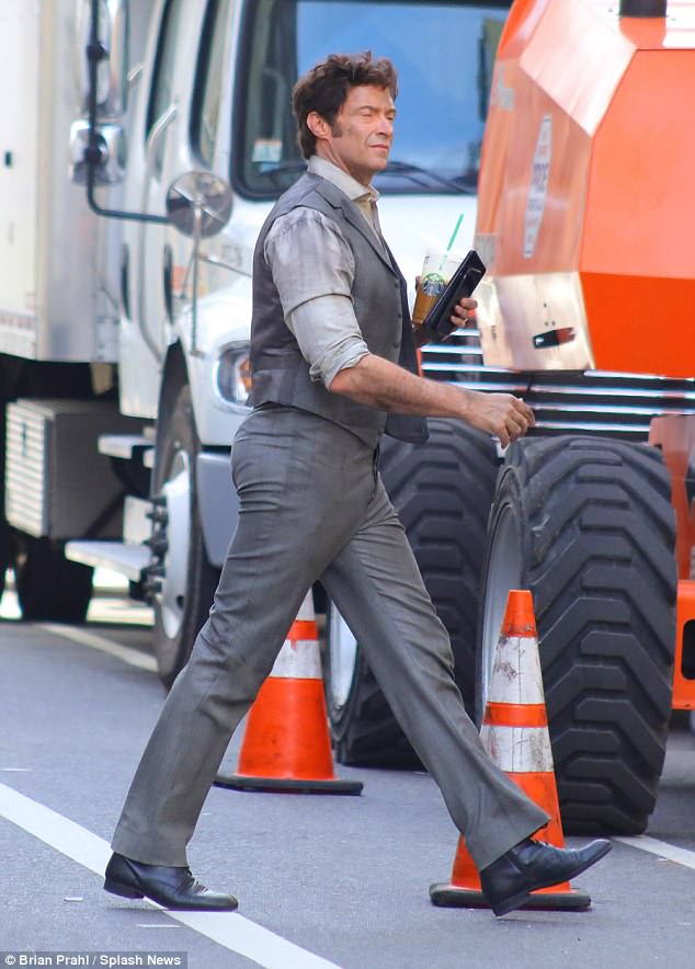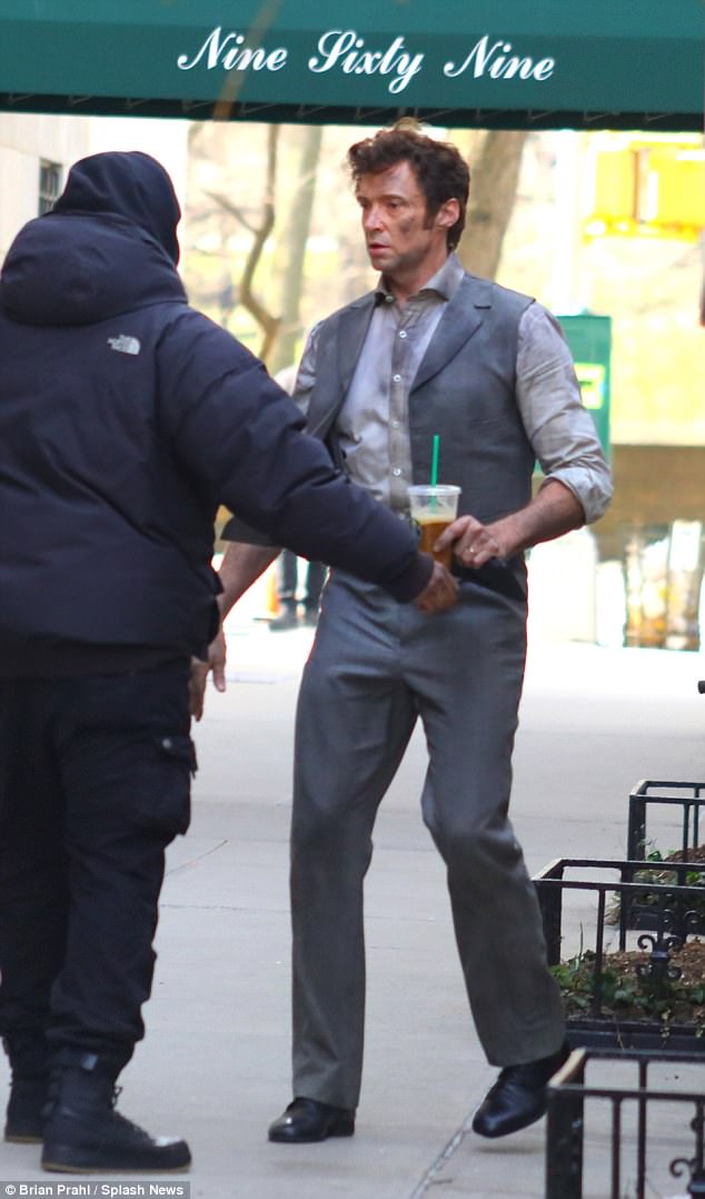 Roll up, roll up... your sleeves! Hugh Jackman gets his hands - and face - dirty as he films circus flick The Greatest Showman with Michelle Williams