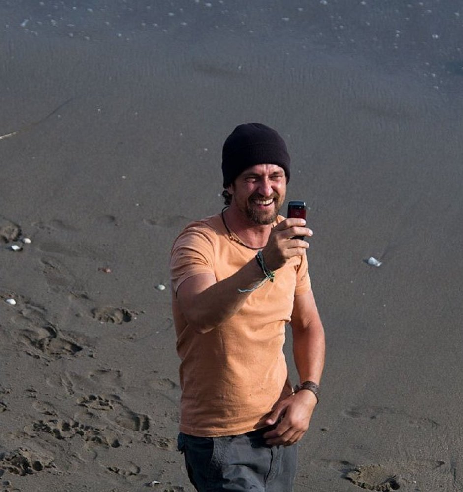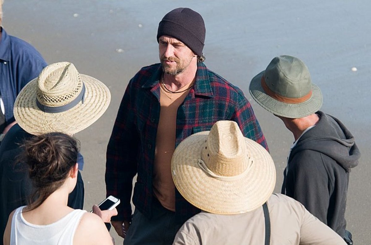 Gerard Butler on the set of Chasing Mavericks. ©Ed Grant grantsgraphics.com