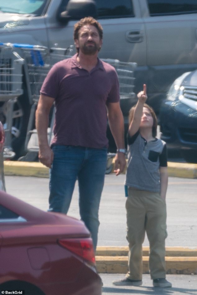 Джерард Батлер выглядит грубо красивым, когда он снимает сцены для своего предстоящего апокалиптического триллера Гренландия