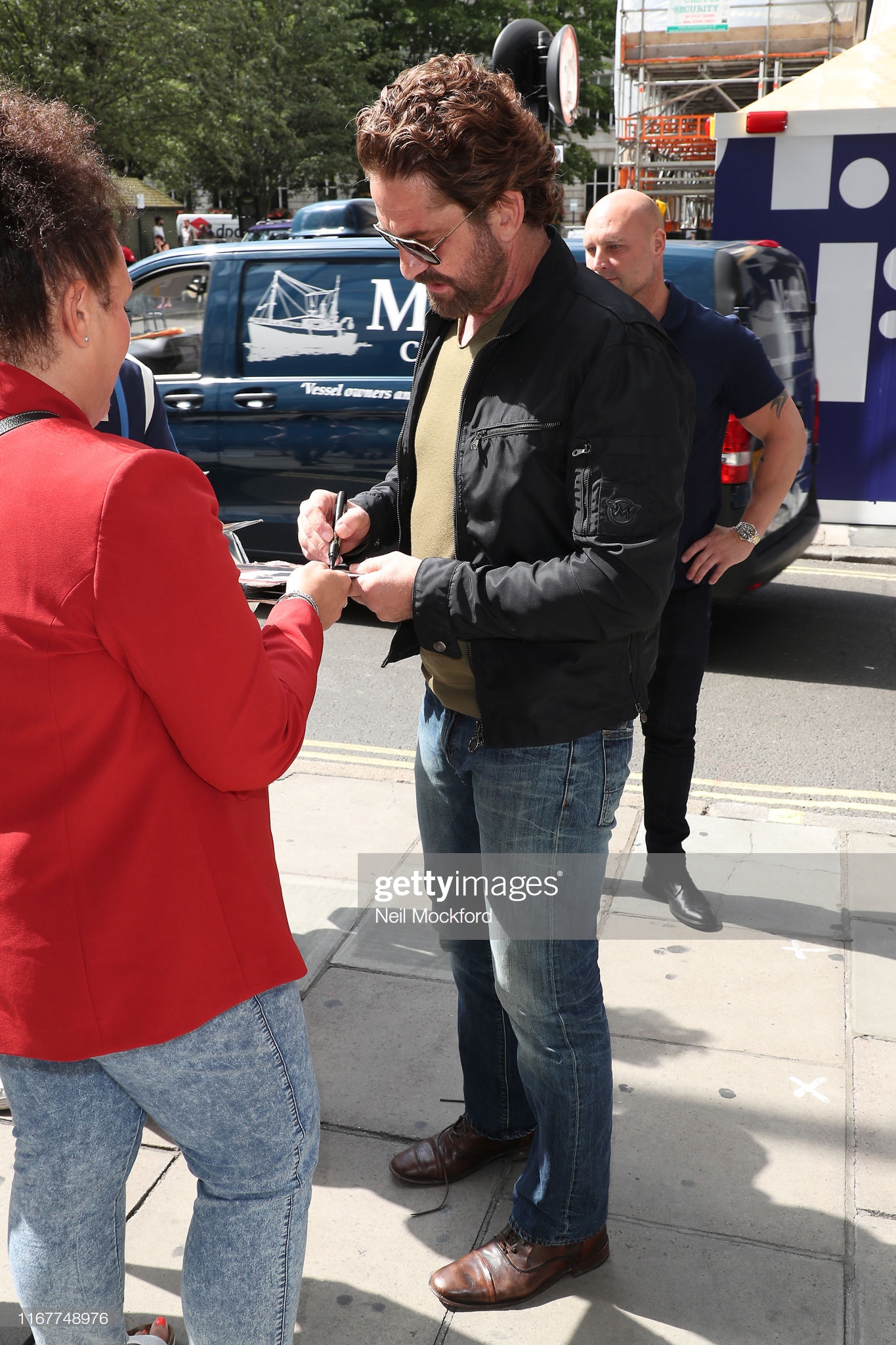 LONDON, ENGLAND - AUGUST 13: Gerard Butler at Bauer Radio Studios on August 13, 2019 in London, England.