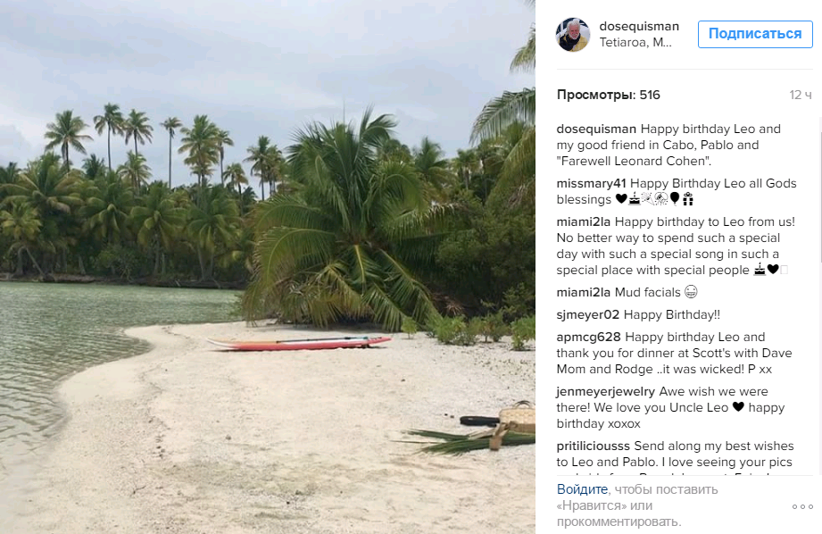 Так что, судя по всему Лео сейчас отлично проводит время в кругу семьи на потрясающем острове))) :)