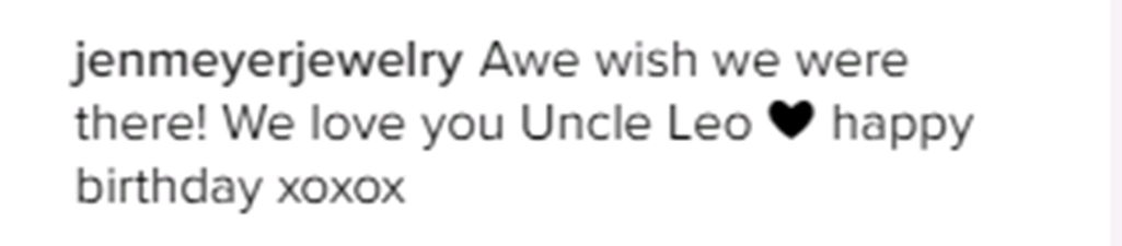 «Оу, как бы мы хотели быть там! Мы любим тебя, Дядя Лео С Днём Рождения, целую»