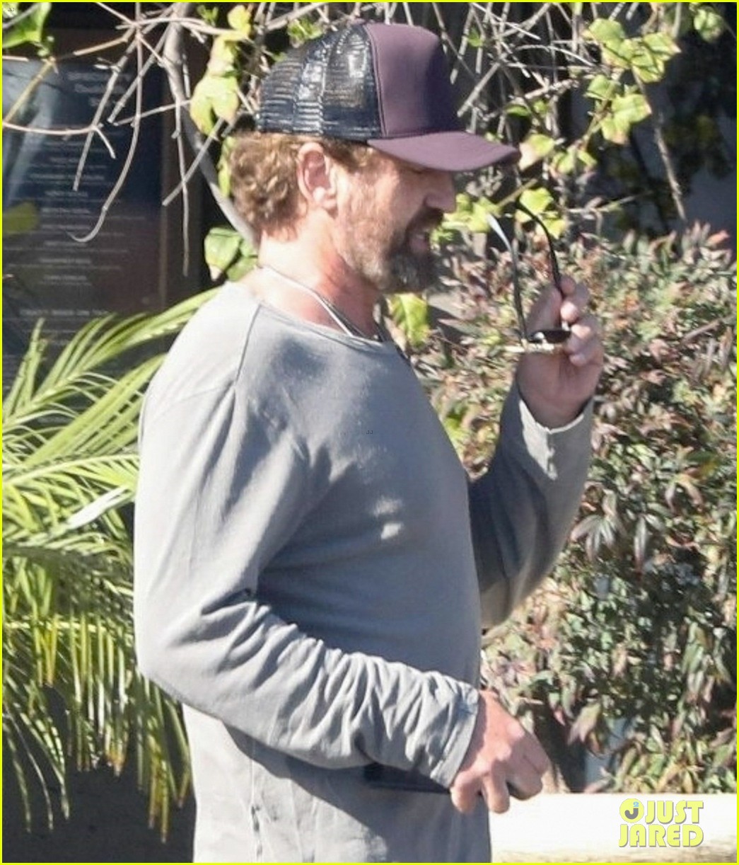 50-летний актер Angel has Fallen старался держаться в тени в темно-бордовой бейсболке в паре с серой рубашкой с длинными рукавами и темно-синими брюками, когда он вышел на улицу.
