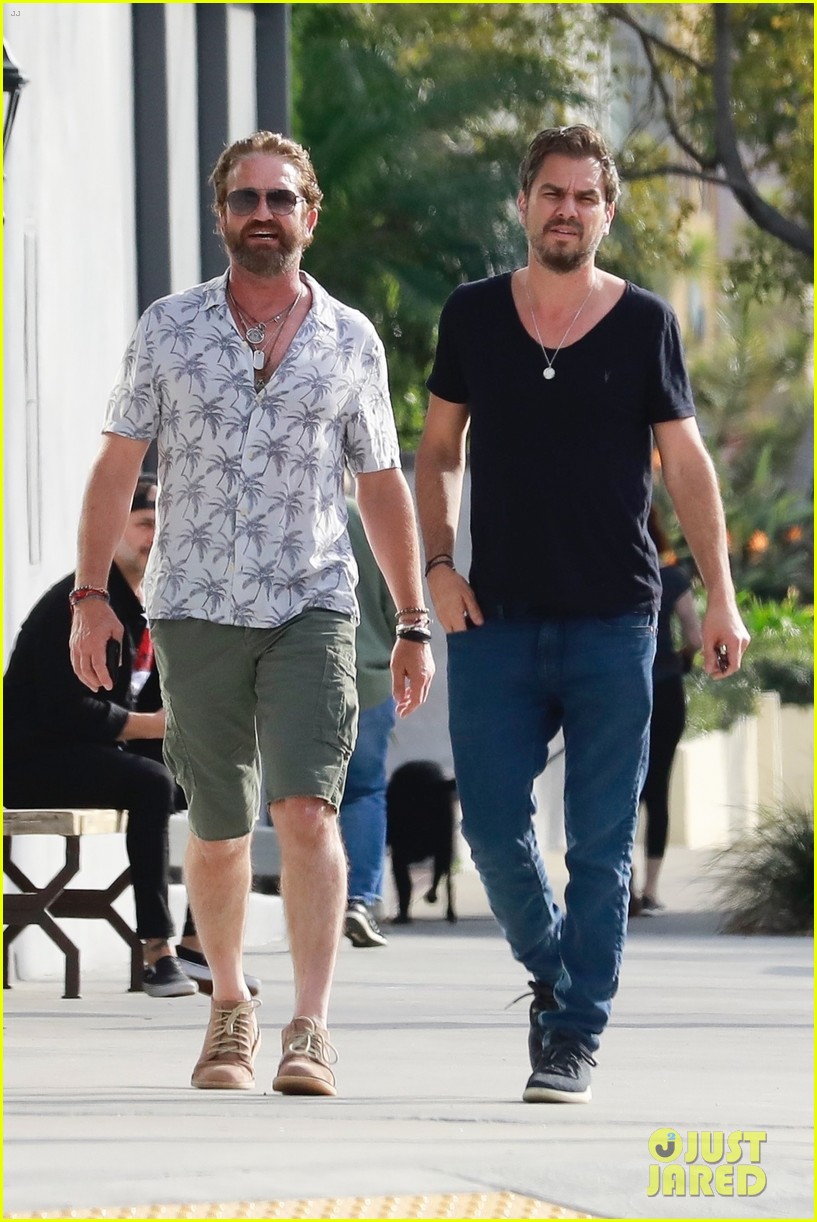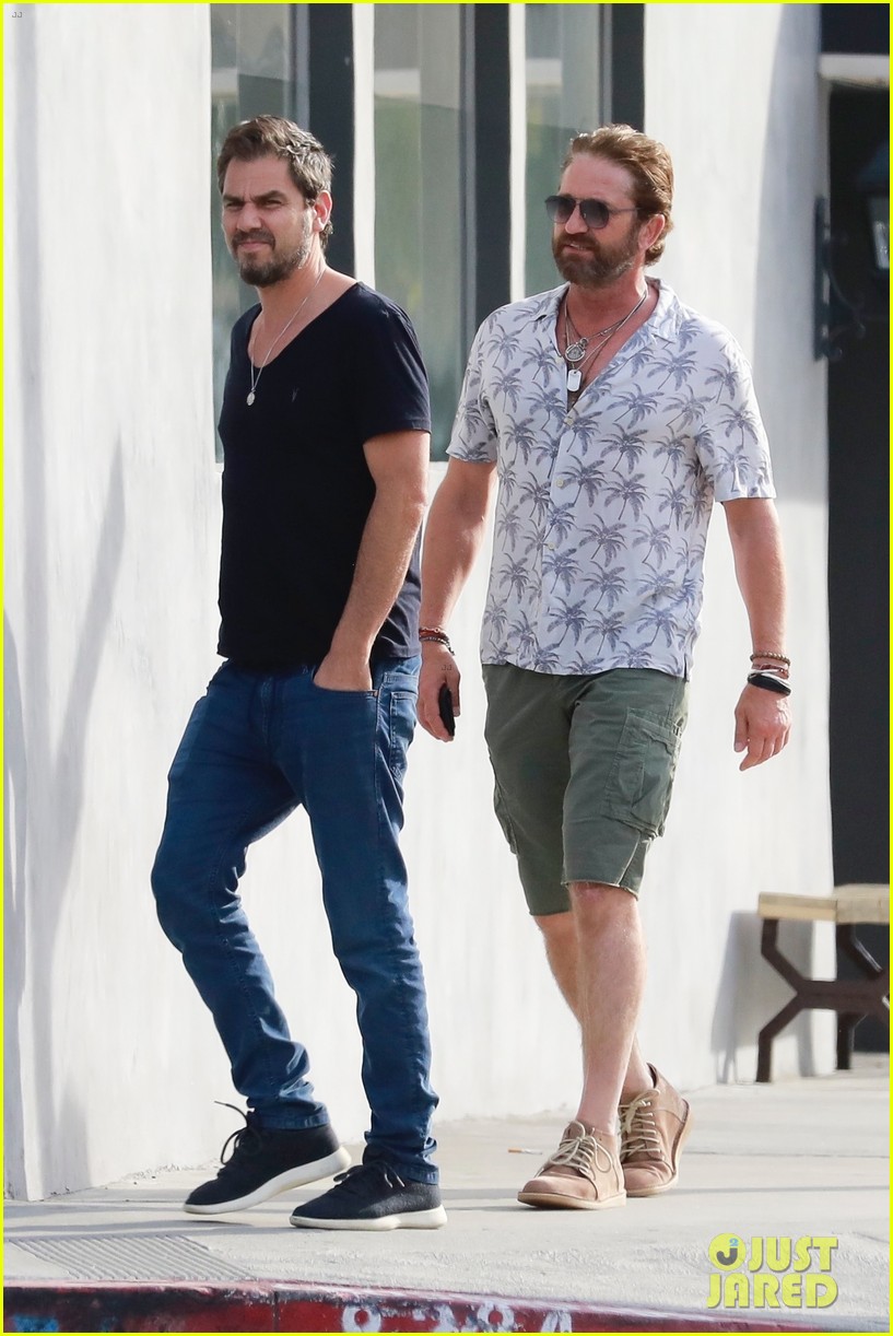 Джерард Батлер идет рядом с другом, когда он прибывает в Crossroads Kitchen в Лос-Анджелесе в пятницу (24 января).