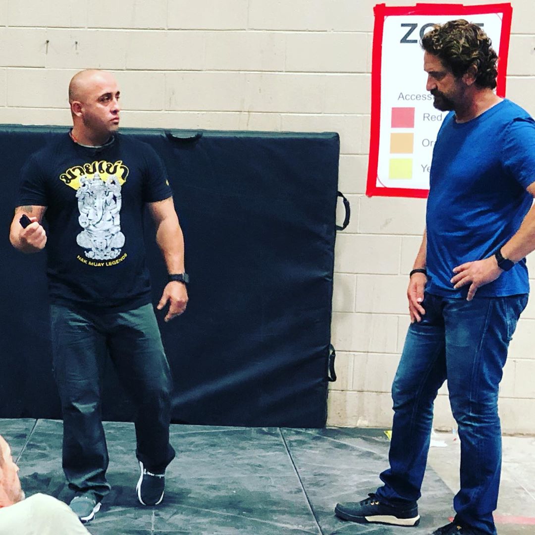 Gerard and the stunt coordinator Marco Morales reviewing a stunt