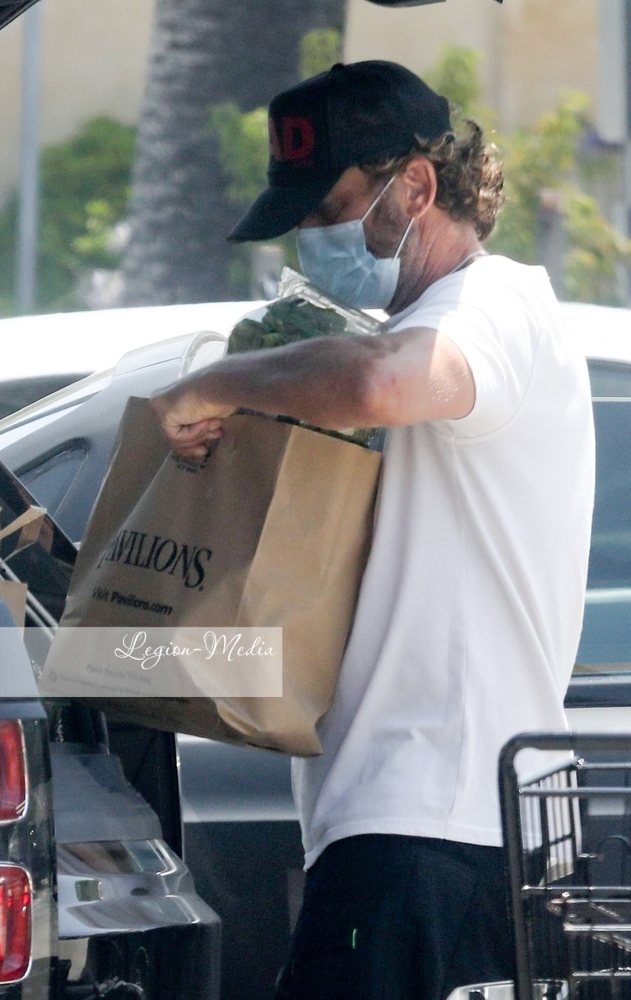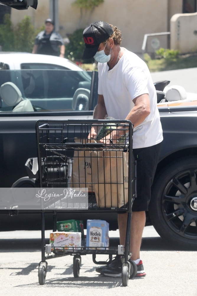 Gerard Butler And Morgan Brown Get Some Grocery Shopping Done At Pavilions In Malibu.