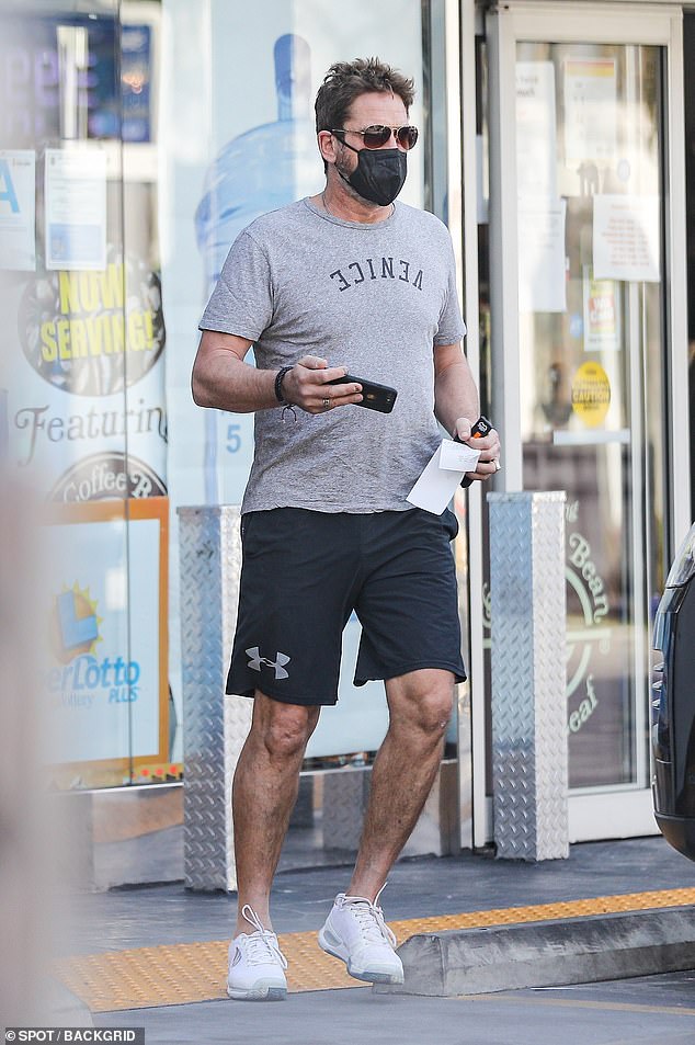 Джерард Батлер продемонстрировал свою мускулистую фигуру в серой футболке и шортах после остановки на заправке в Западном Голливуде в среду. 51-летний актер был одет в черные шорты Under Armour и белые кроссовки.