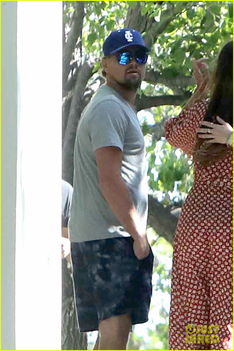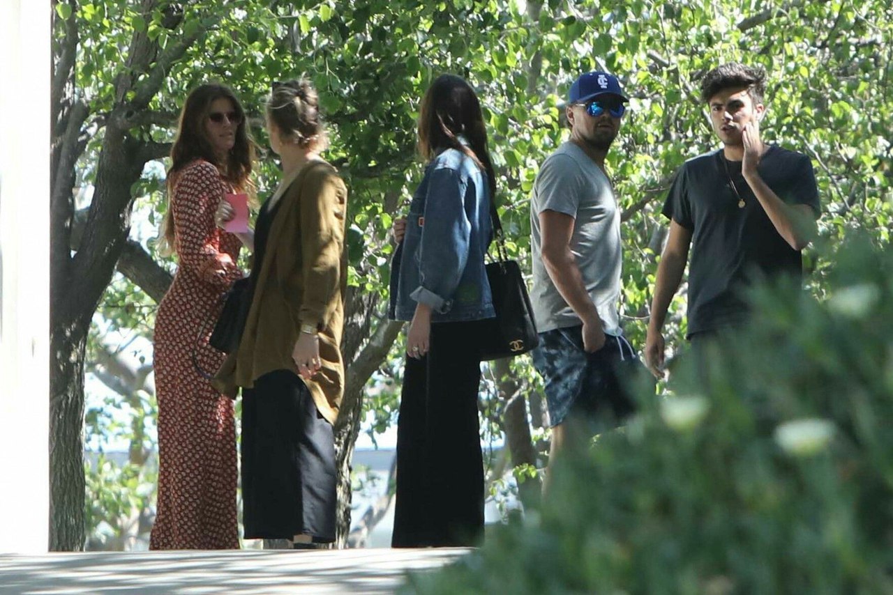 На фото Лео и рядом с ним стоит жена его друга Каролина Парсонс. За ними следом идут дочь отчима Леонардо - Эмили Уорд со своей знаменитой подругой и актрисой Дакотой Джонсон. На последнем фото можно увидеть крестника Лео - Милана Джонсона.