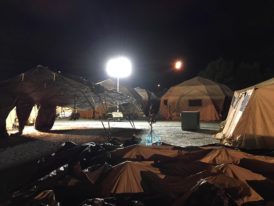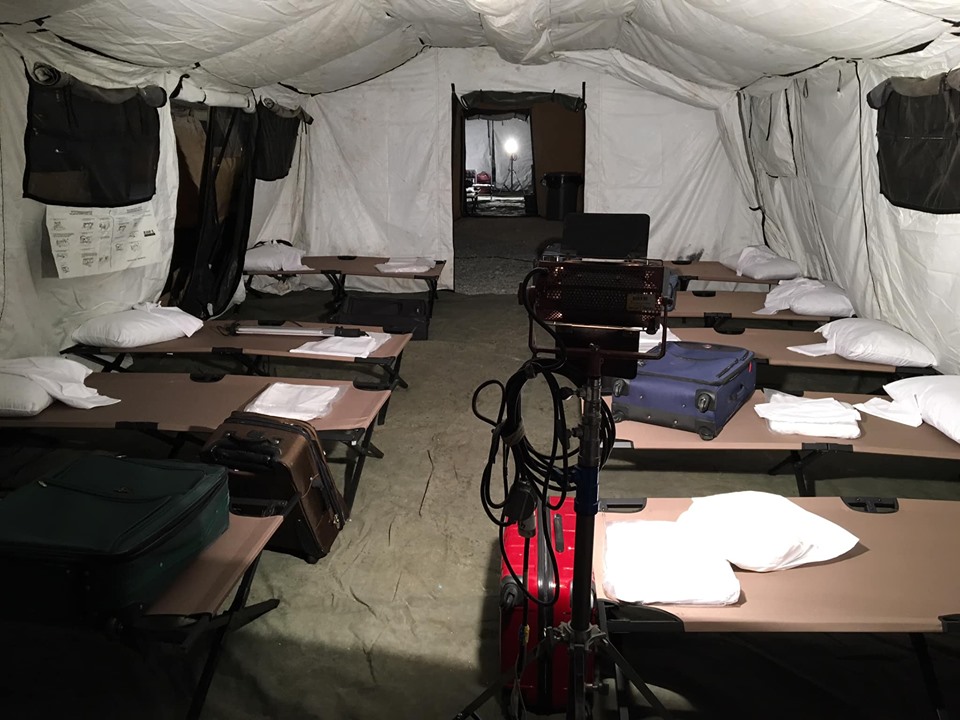 Setting up military tents for the new movie green land with Gerard butler