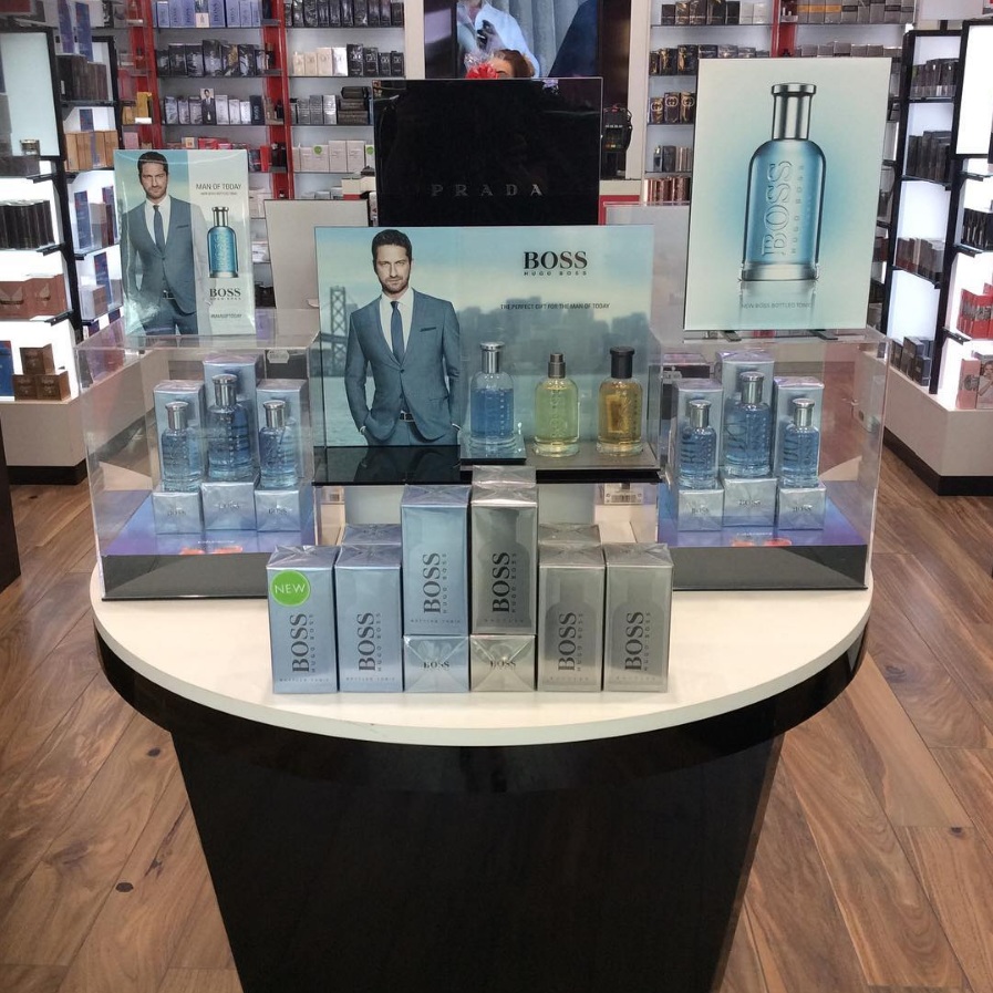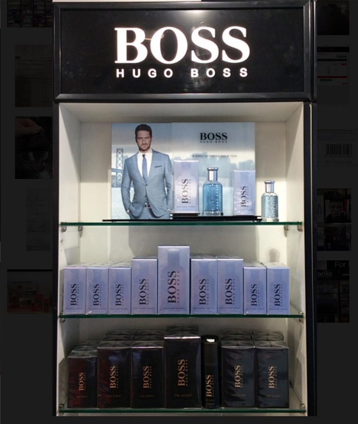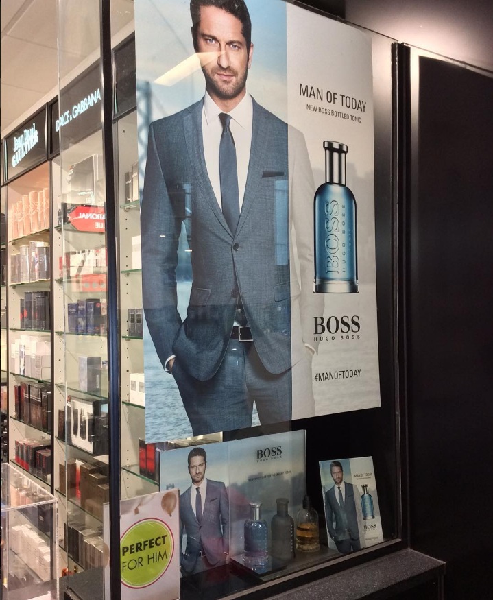 @GerardButler matched with @HUGOBOSS perfect pairing for a window display! ensure you stop @wcdutyfree to try out this scent.