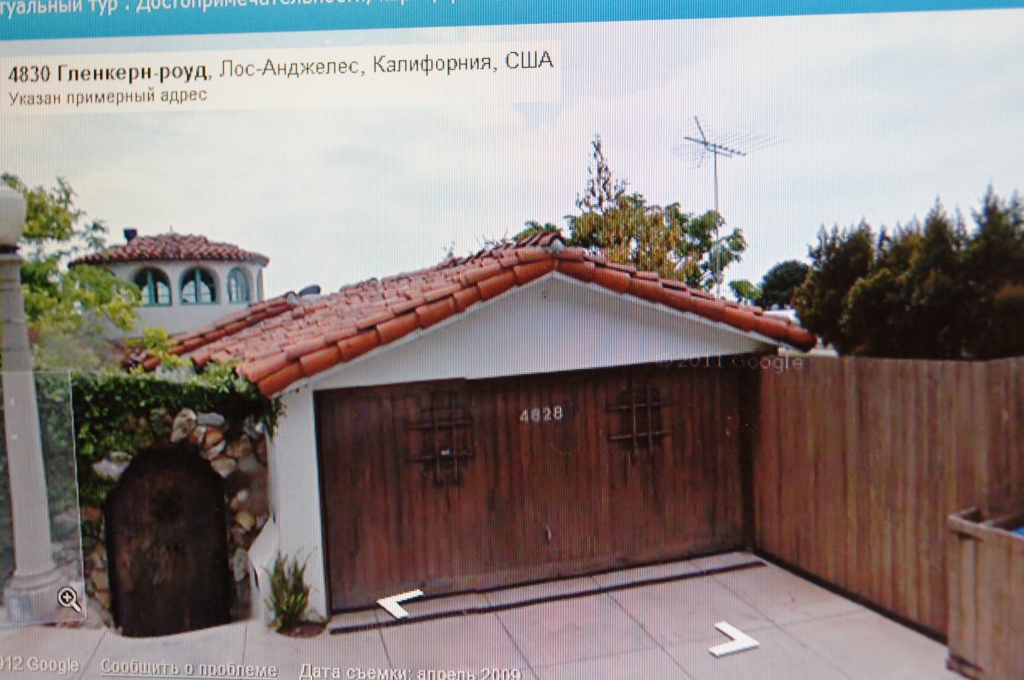 Девочки, сегодня бродила по вертуальному Лос- Анджелесу. Ради интереса набрала адрес и к своему удивлению быстро вышла на его дом, хочется так верить, но вроде похож. Адрес 4828 Glencairn Road это вход со двора.