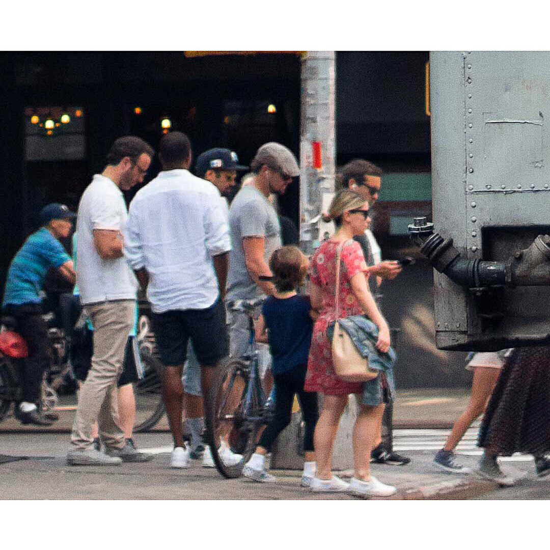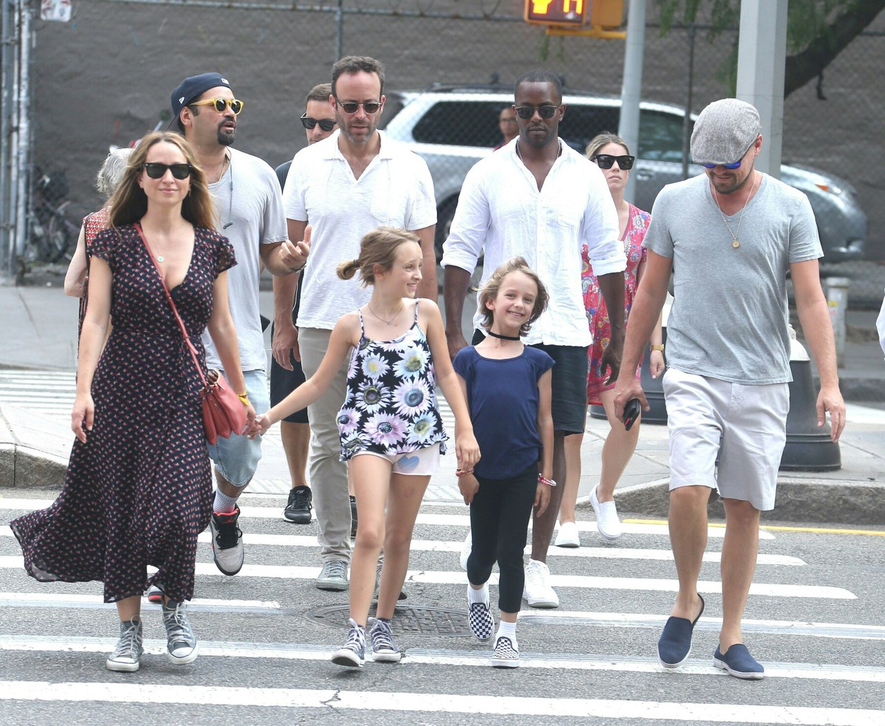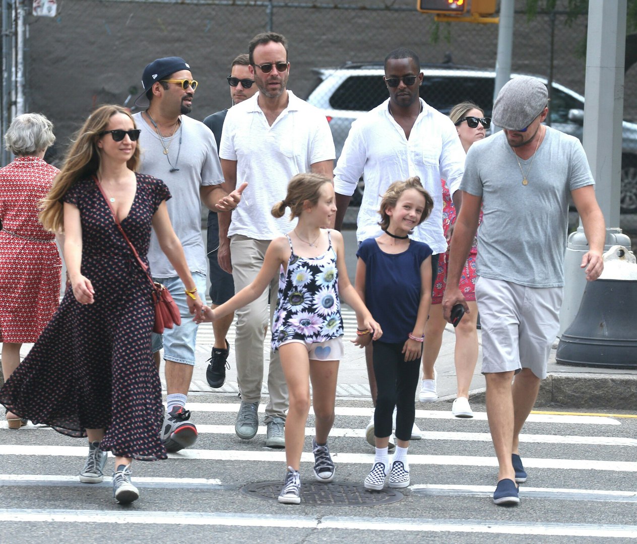 Леонардо в Нью-Йорке 13 июня, с друзьями Тоби, Дженнифер, Винсентом, Дэймоном и Скоттом и детьми - Отисом и Руби.
