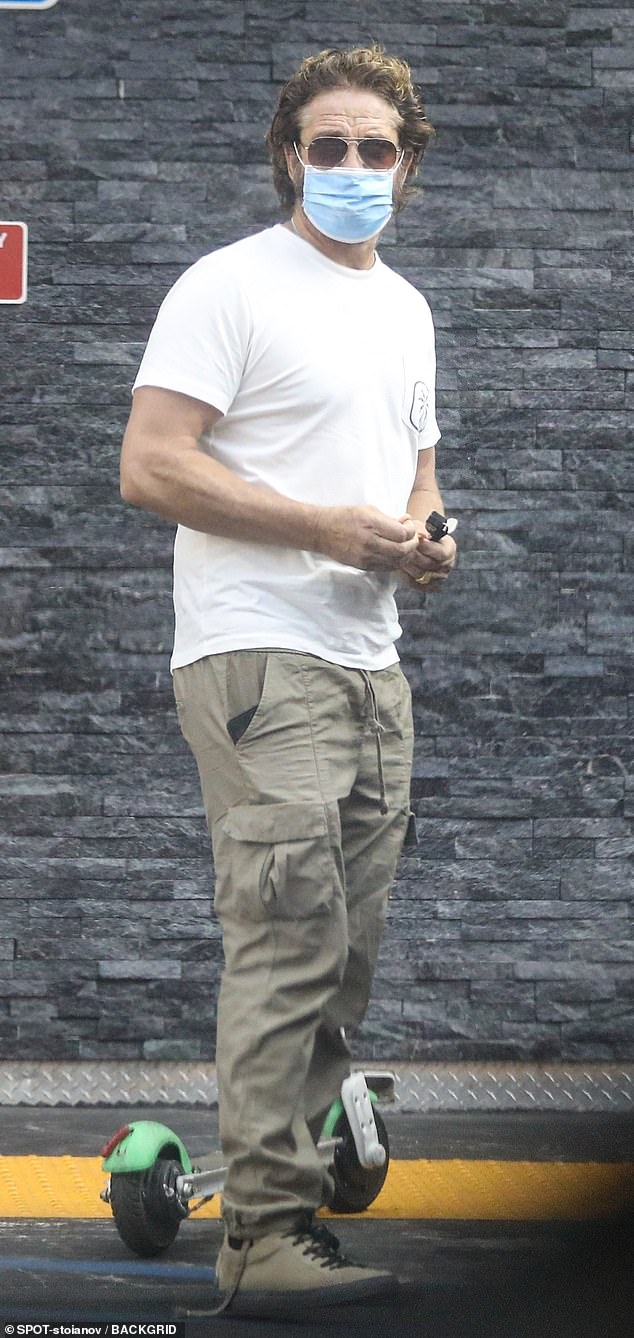 А в понедельник Джерард Батлер отправился по своим личным делам в Лос-Анджелес.