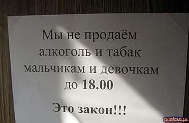Хоть и про нас, но смЭшно!!!!! Алкоголь и табак до 18.00.....