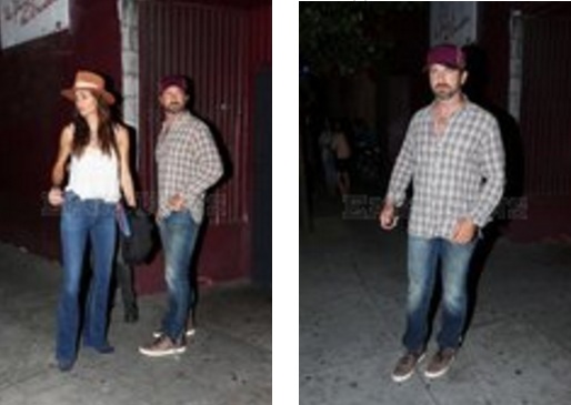 Нда, сегодня мне нечего сказать в защиту ее имиджа. Только то, что они два сапога-пара. Майка-алкоголичка вполне себе гармонирует с рубашкой с красным ( вино что-ли?)пятном на груди.