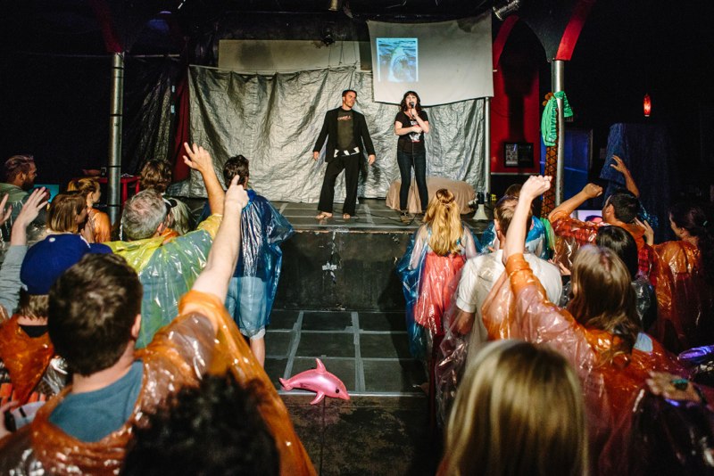 Там всем зрителям выдают плащики - спец. одежду