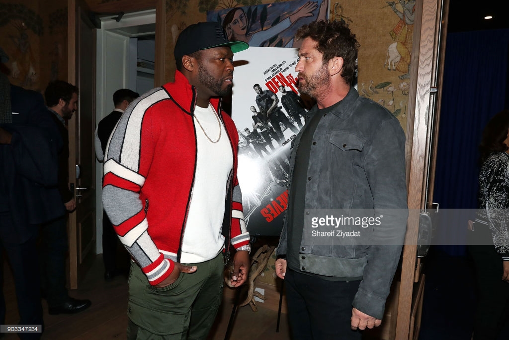 NEW YORK, NY - JANUARY 09: Curtis '50 Cent' Jackson and Gerard Butler attends 'Den Of Thieves' Private Screening at the Whitby Hotel on January 9, 2018 in New York City.