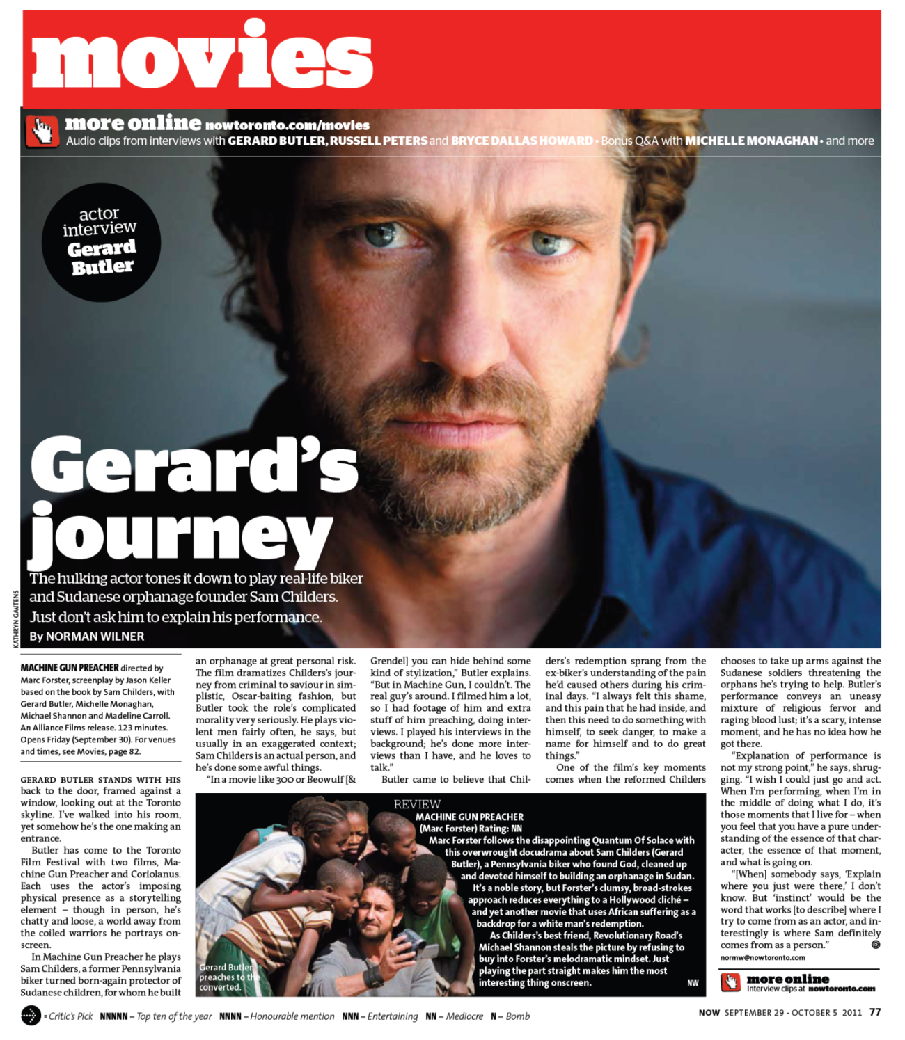 Статья о Джерарде Батлере из NowToronto (september 29 — october 5 2011).