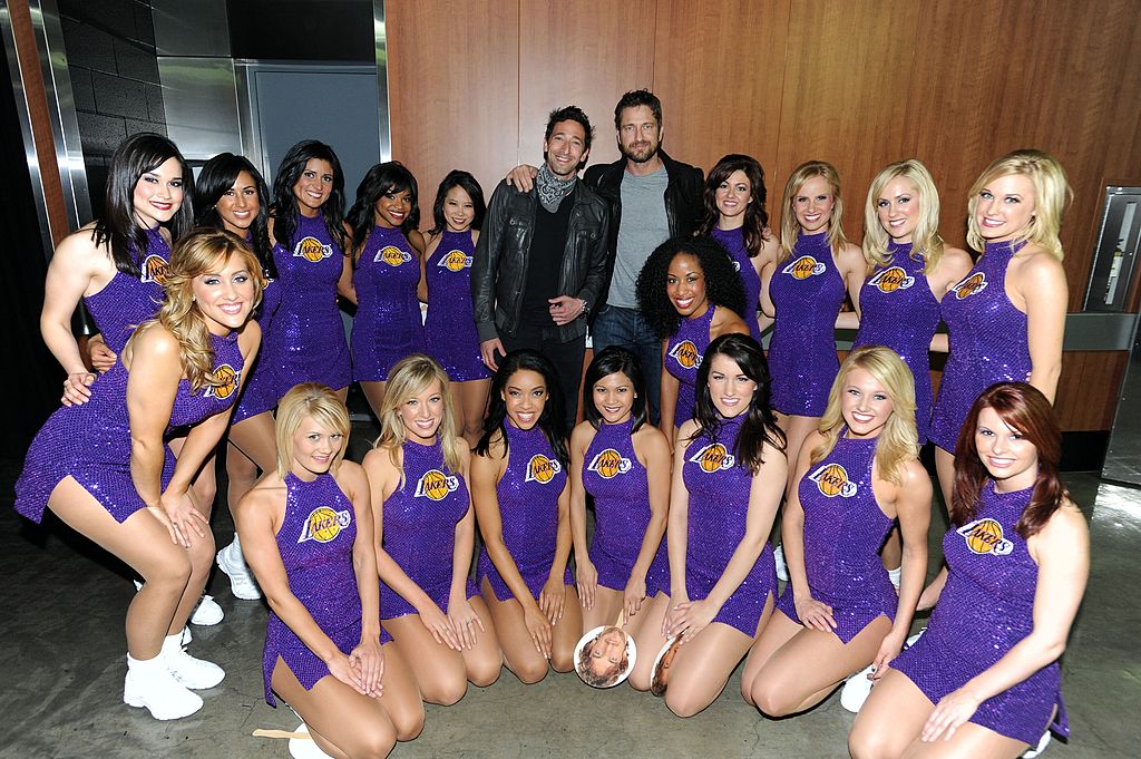 .@adrienbrody and @GerardButler with the @Lakers Girls in 2010 #TurnBackTheClock