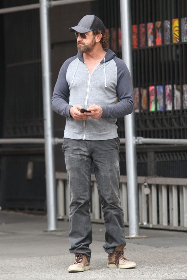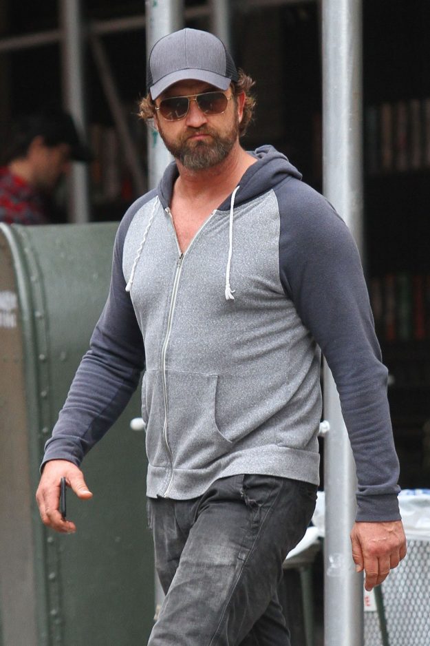 Gerard Butler is unrecognisable in New York after swapping suave groomed appearance for scruffy beard and baggy jeans – but it's all for new movie role in Keepers