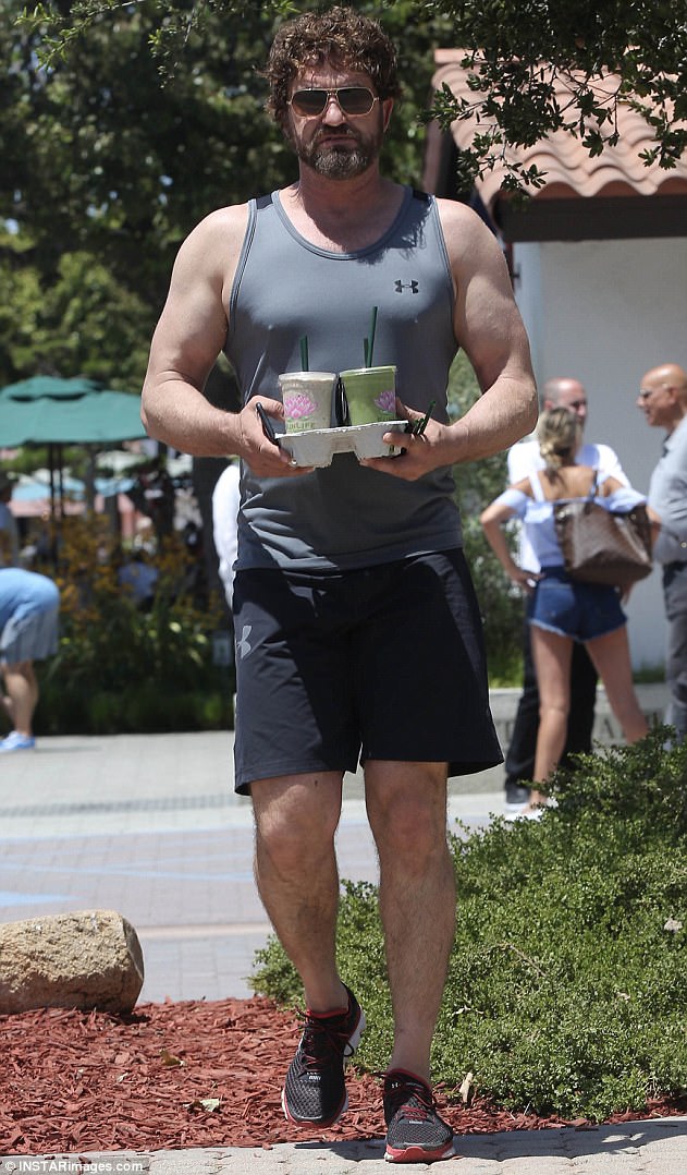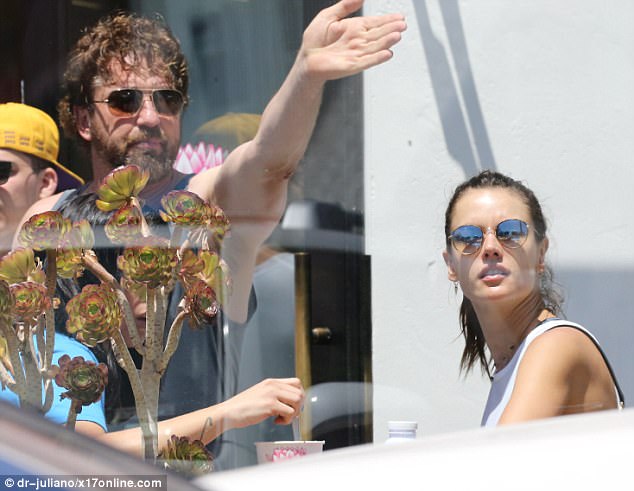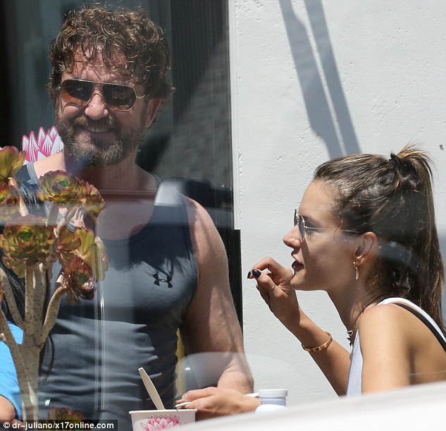 Juice date! Alessandra Ambrosio flaunts figure in tight white gear as she meets up with Gerard Butler in Malibu