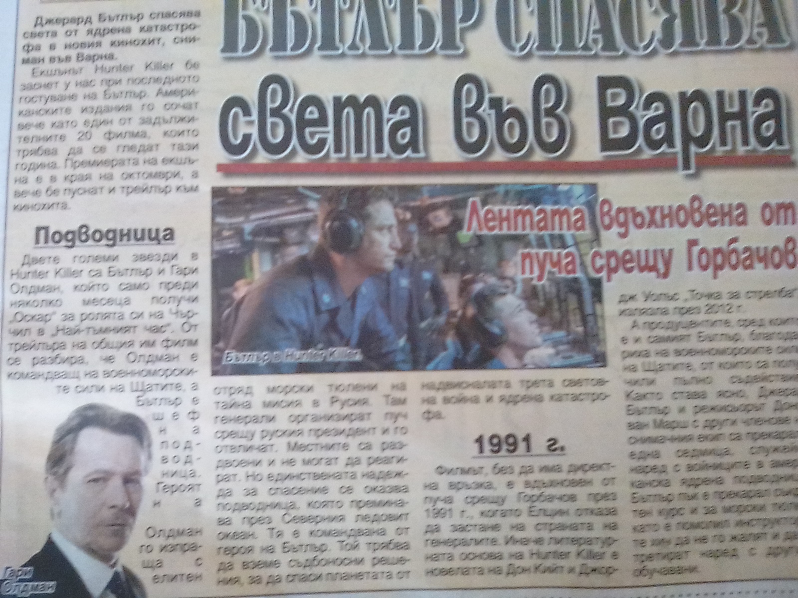 Все о чем пишут в статье мы уже знаем,но все таки переведу:Выпустили трейлер кинохита,снятого у нас Батлер спасает мир в ВарнеФильм вдохновлен путчем против Горбачева:Джерард Батлер спасает мир от ядерной катастрофы в фильме снятом у в Варне