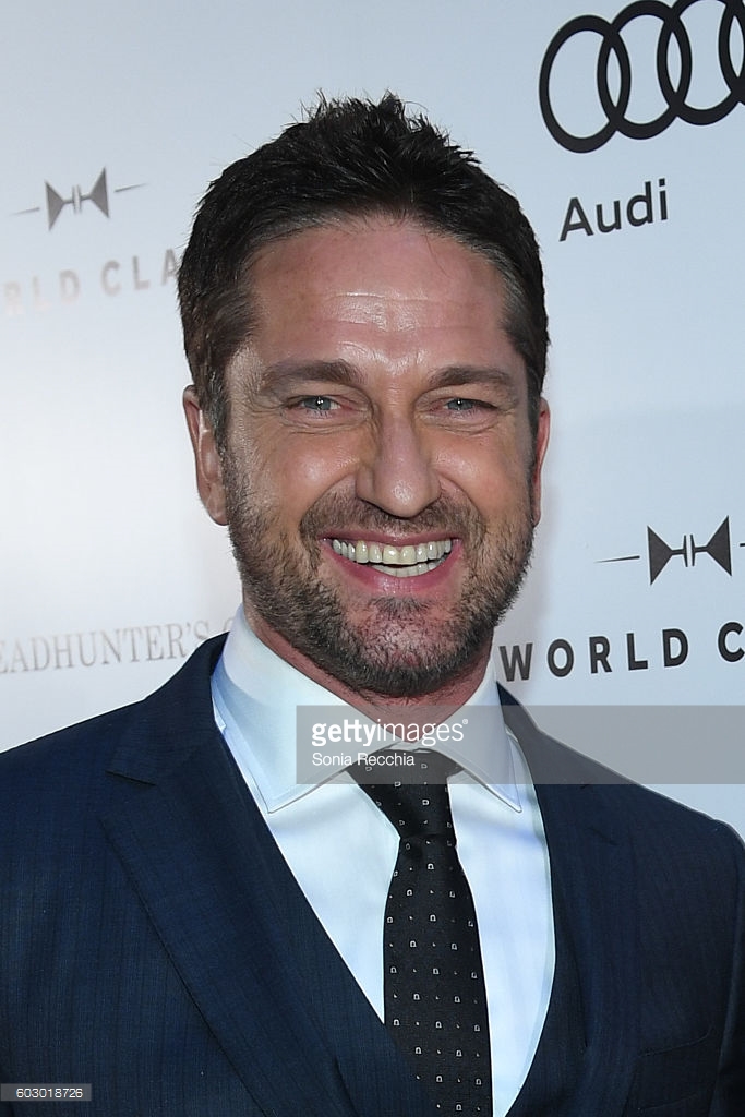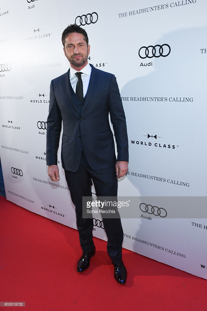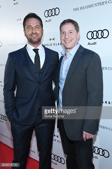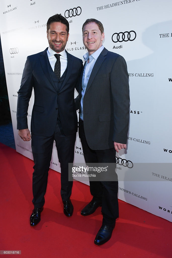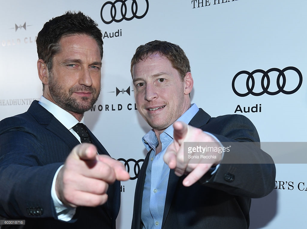 Gerard Butler makes his way to "The Headhunter's Calling" private event with director Mark Williams. The two seem to be having a blast at the Audi co-hosted TIFF event.