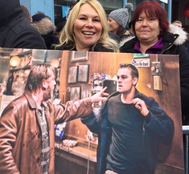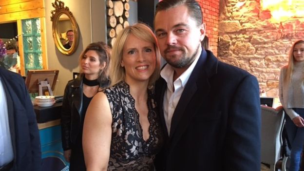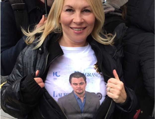 Ей 49 лет. Она выехала из Larbert в 05:00 утра, чтобы быть первой в очереди, чтобы увидеть Леонардо ДиКаприо в Эдинбурге!