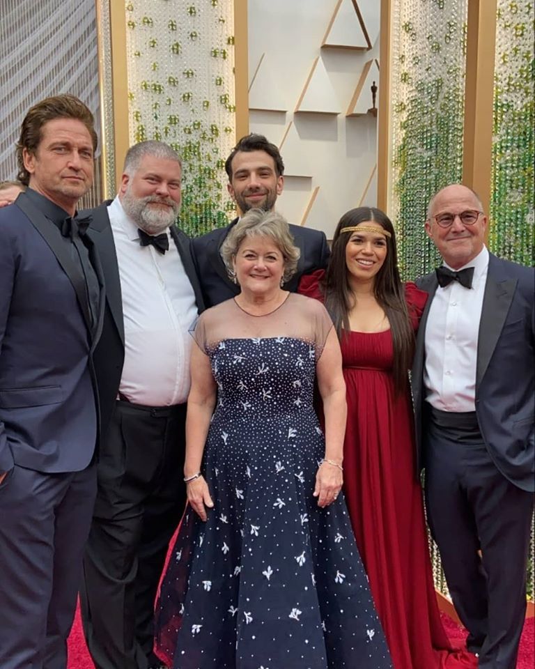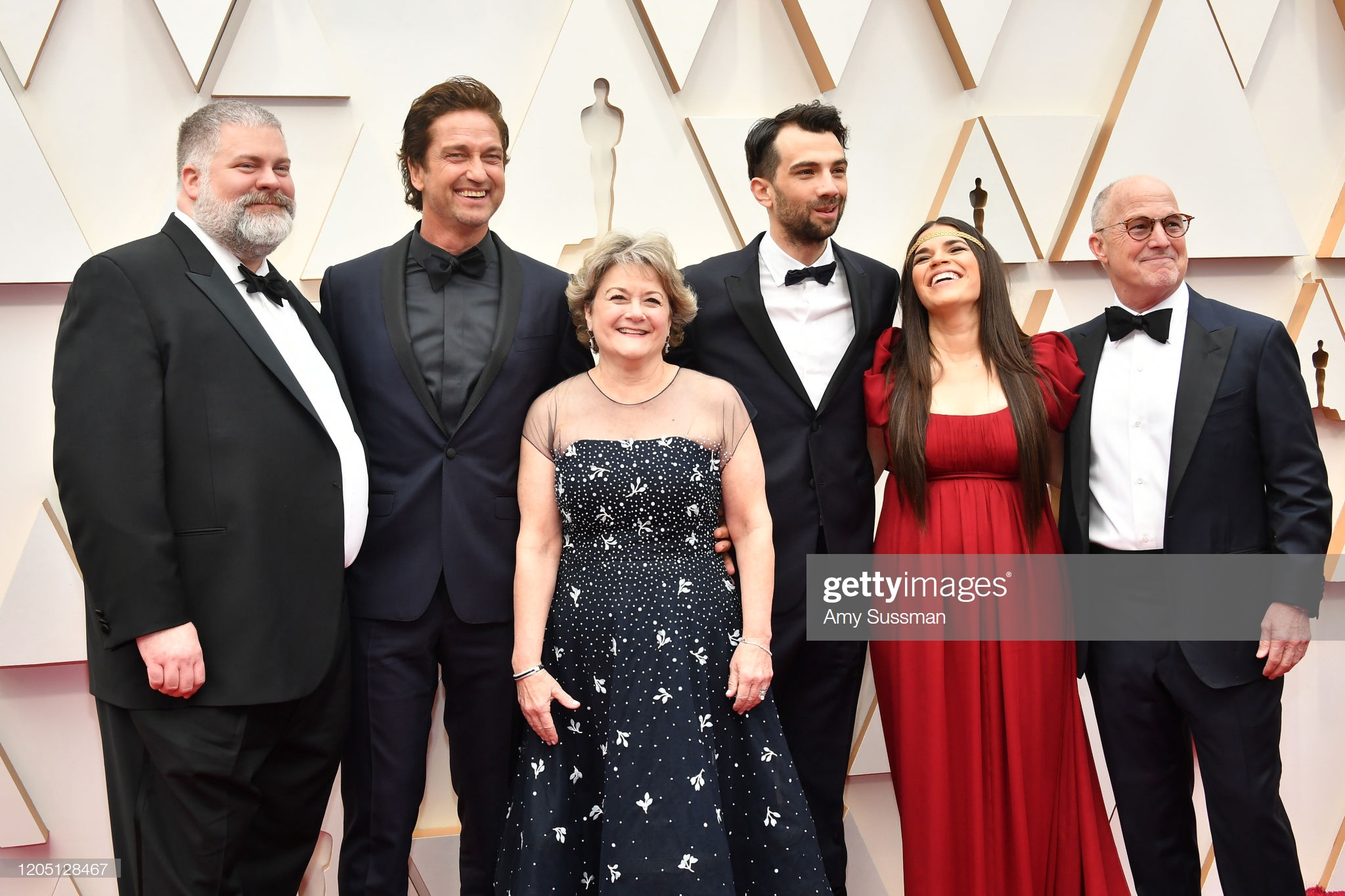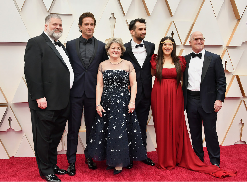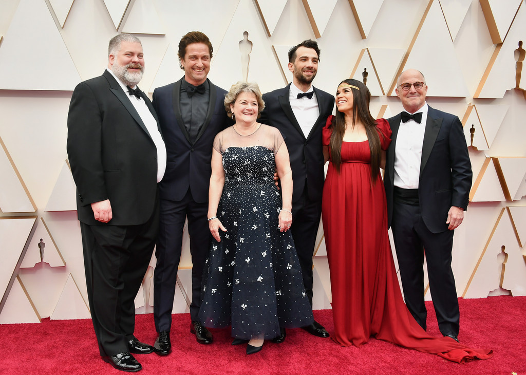 Режиссер Дин Деблуа, Джерард Батлер, продюсер Бонни Арнольд, Джей Баручел, Америка Феррера и продюсер Брэдфорд Льюис принимают участие в 92-й ежегодной церемонии вручения премий "Оскар" в Голливуде и Хайленде 09 февраля 2020 года.