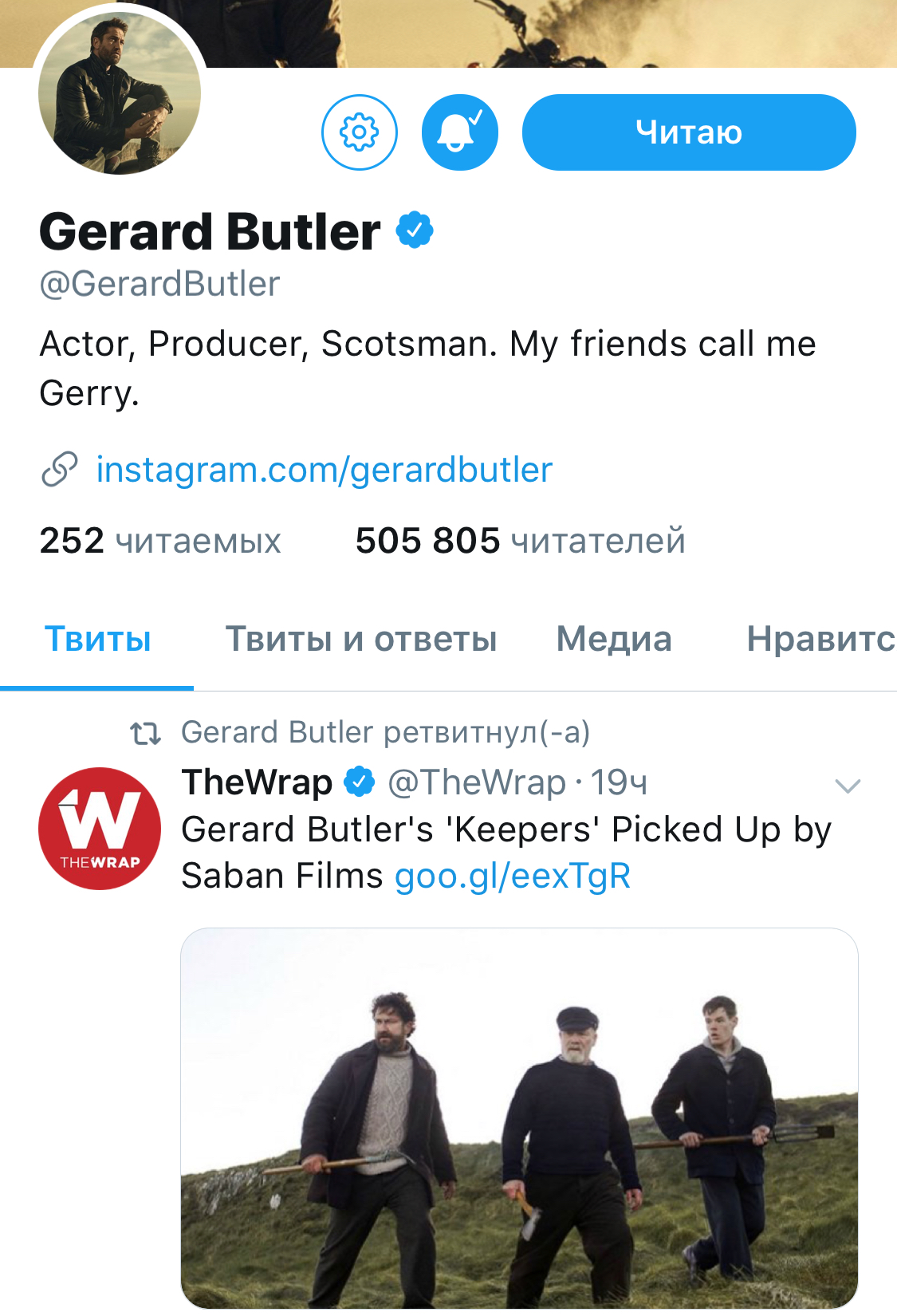 Началось ))) https://twitter.com/gerardbutler/status ... 24193?s=21 завтра увидим трейлер! Ура!