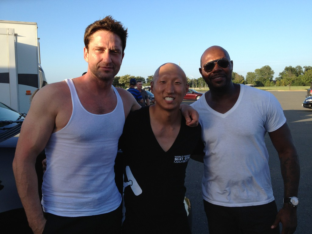 С режиссёром картины Антуаном Фукуа и актёром Арнольдом Чоном («Пираты Карибского моря»). С поклонником.