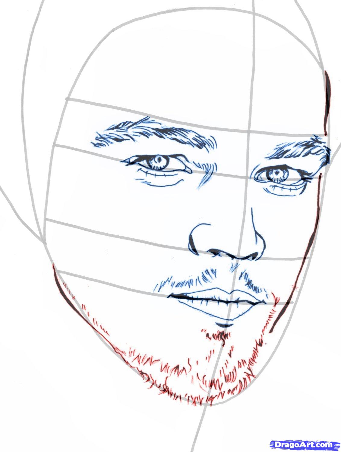 Нарисуйте форму лица и добавьте небольшую бороду.