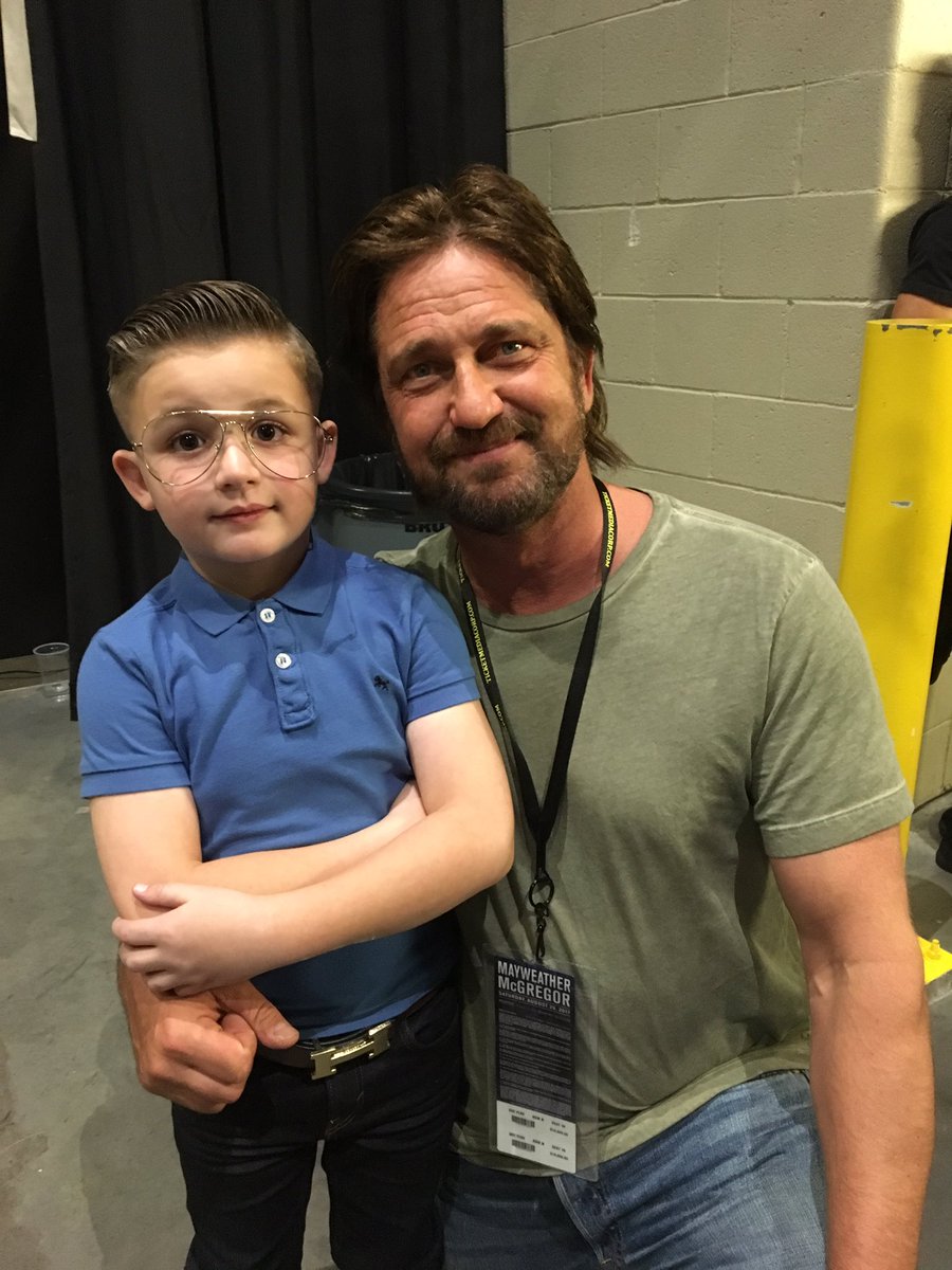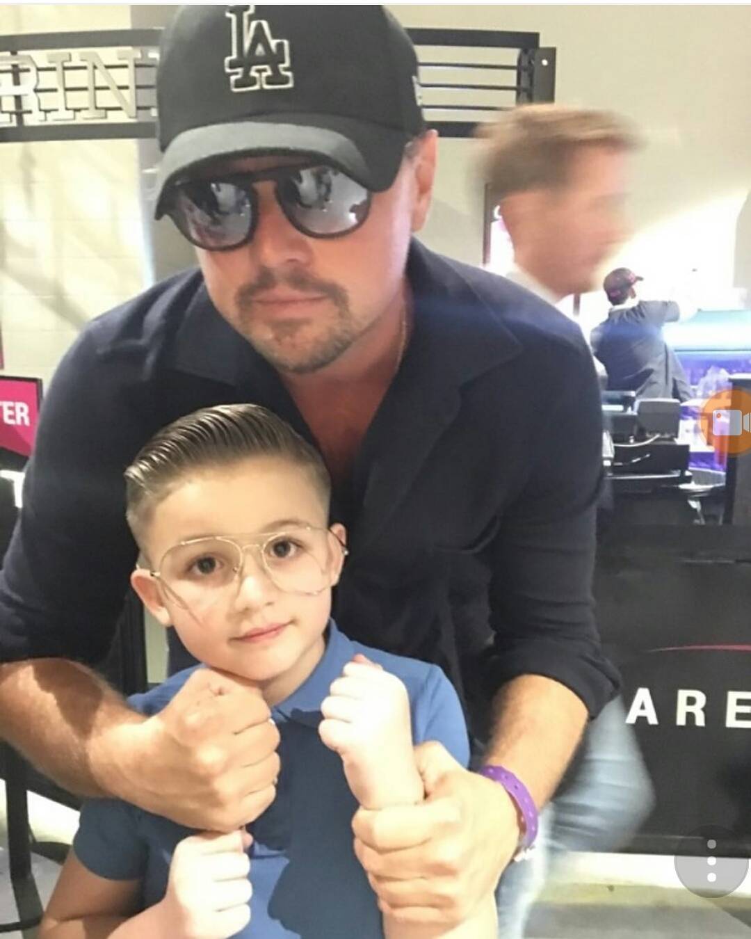Лео с юным фанатом перед боем Мейвезера и МакГрегора)