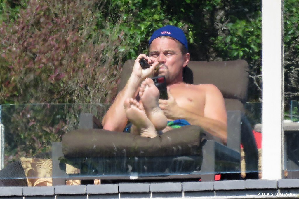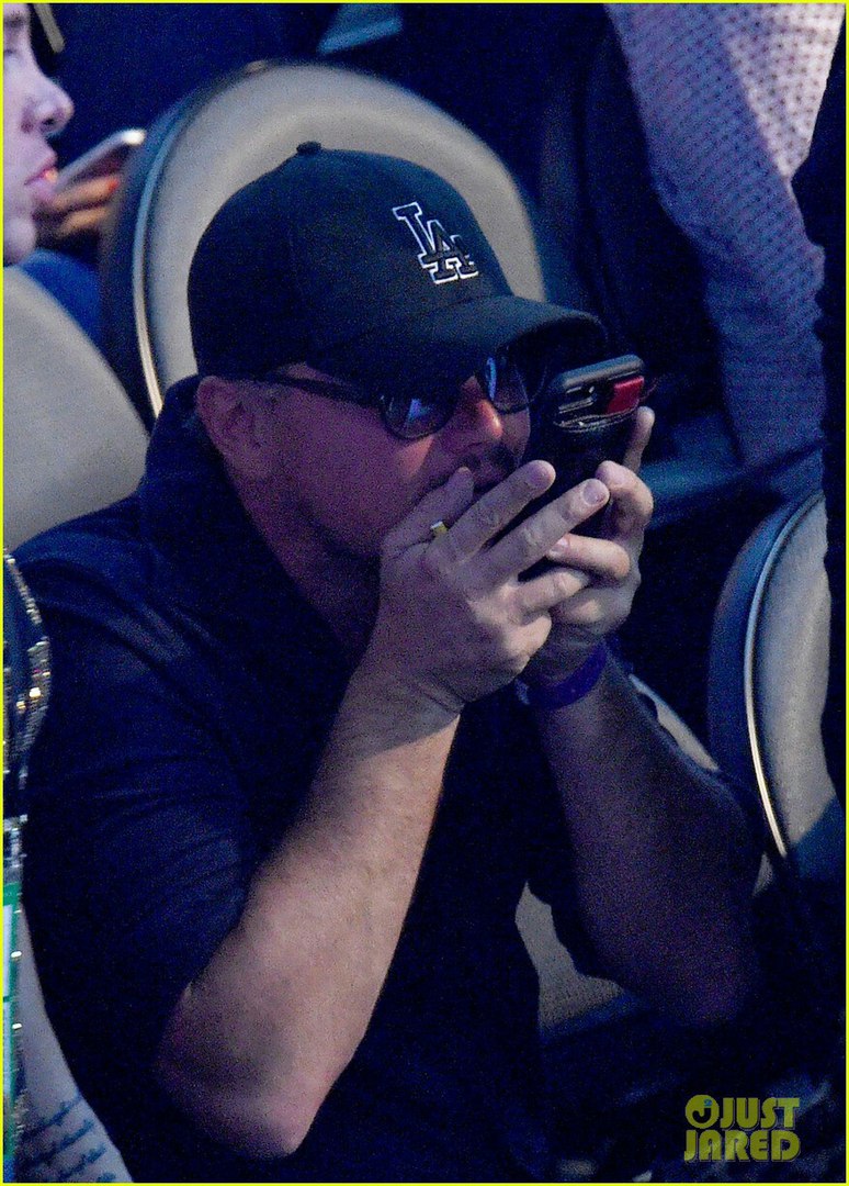 Как известно, Лео не расстается со своим смартфоном никогда) Он с ним и на прогулке, и на отдыхе, и на бейсбольном матче и дома у бассейна.