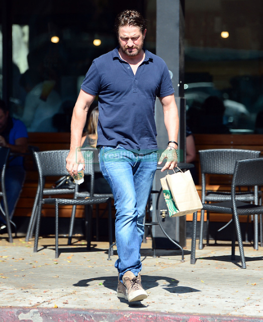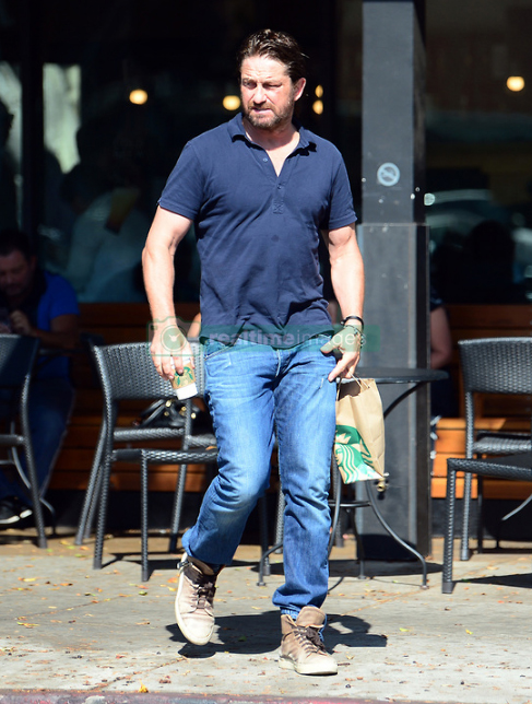 Malibu, CA Actor Gerard Butler was spotted heading back to his car after a casual night out with a group of friends at SoHO in Malibu.