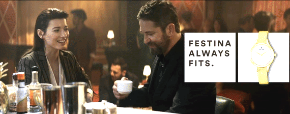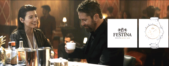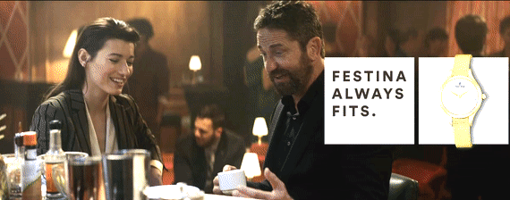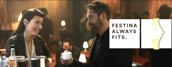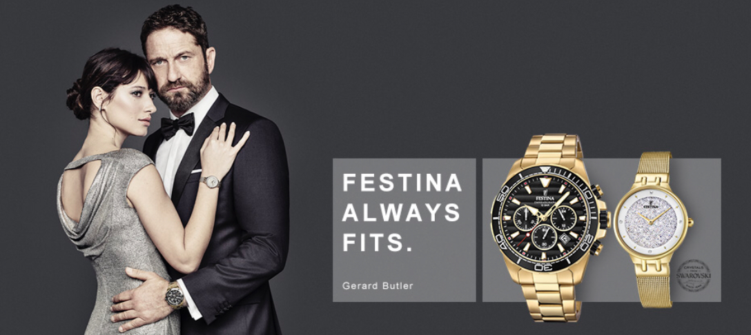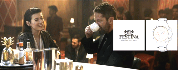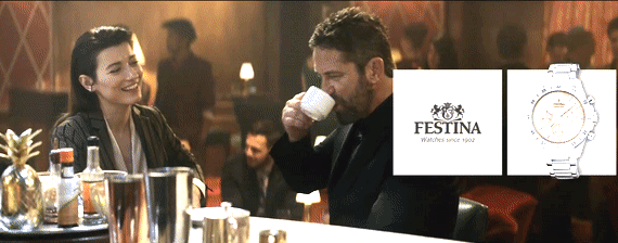 Реклама Festina с участием Джерарда Батлера в домашнем аэропорту бренда в Барселоне. "Запуск нашего первого в истории эксклюзивного набора, сочетающего кристаллы Swarovski и бесплатный браслет, помогает позиционировать Festina как ведущий бренд часов с точки зрения продаж на ряде авиакомпаний Европы.”