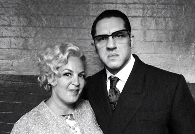 Но Том Харди был практически неузнаваем, превратившись в Ронни Крея для заключительных сцен Легенды, предстоящем биографическом фильме о гангстерах East Endа.