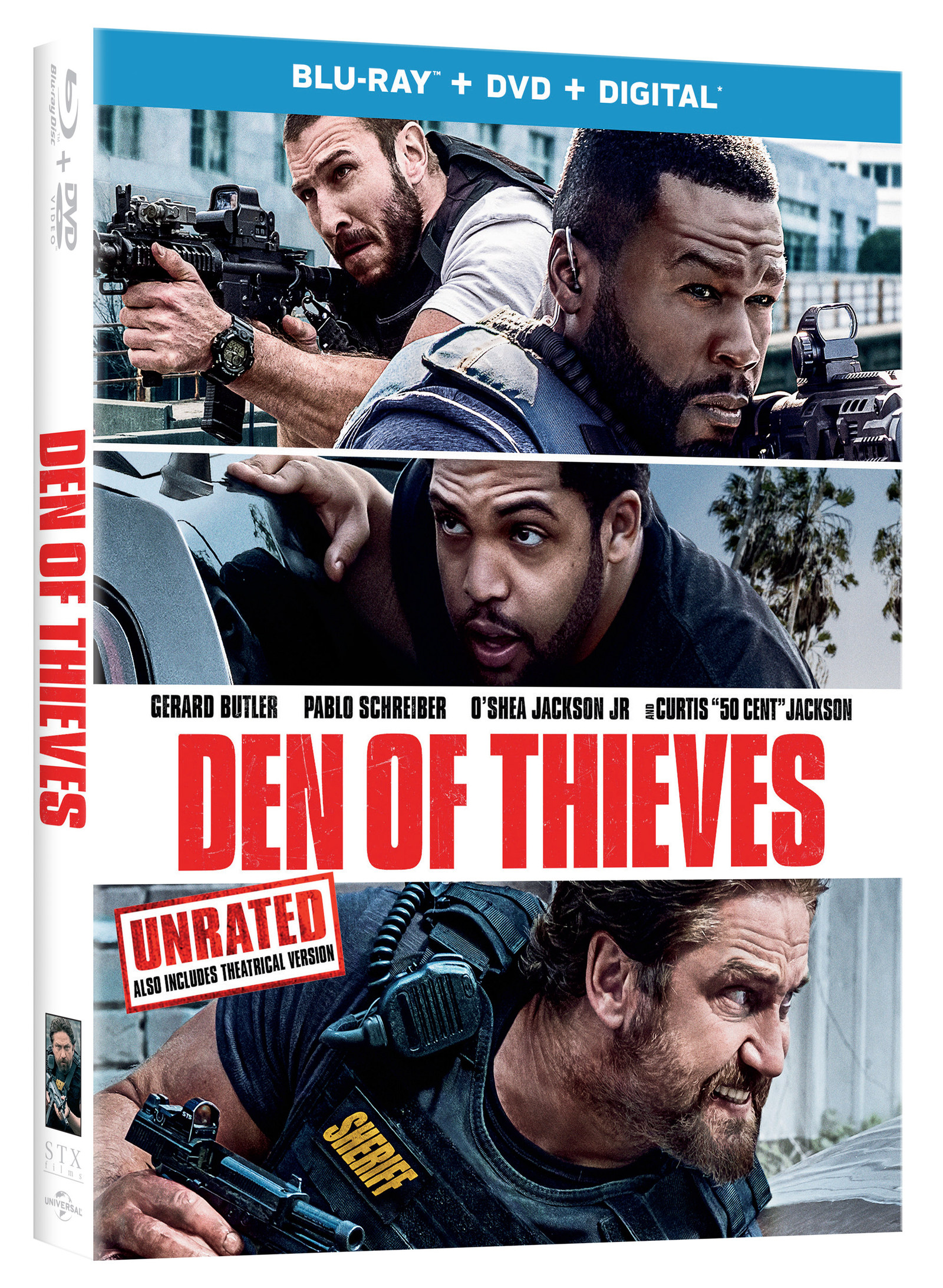 From Universal Pictures Home Entertainment: Den Of Thieves - Unrated GERARD BUTLER, PABLO SCHREIBER, O'SHEA JACKSON JR. AND CURTIS "50 CENT" JACKSON FACE OFF IN THE ACTION-PACKED HEIST THRILLER