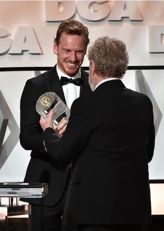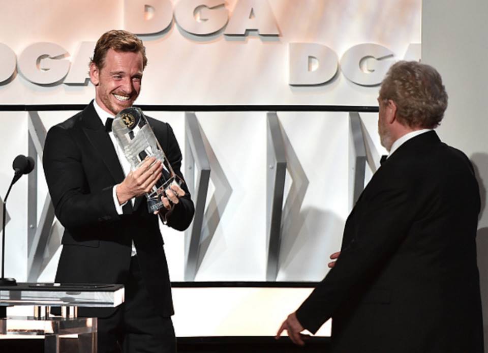 Michael Fassbender presenting Ridley Scott with Lifetime Achievement award at the #DGAAwards Beverly Hilton, Feb 4, 2017. photographer: Alberto E Rodriguez #michaelfassbender #ridleyscott #billycrudup https://www.instagram.com/p/BQIxkekj3Dq ... nderonline
