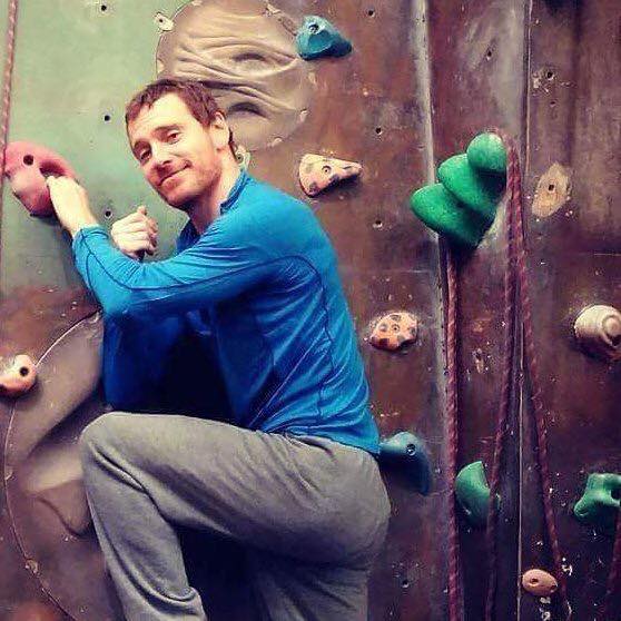 Michael #Fassbender having a bit of fun! #climbingthewallI