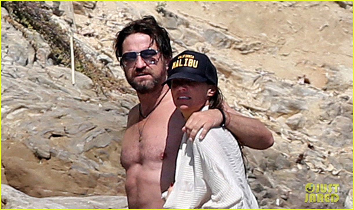 Джерард Батлер демонстрирует свое тело без рубашки, прогуливаясь по пляжу на этой неделе в Малибу, Калифорния.