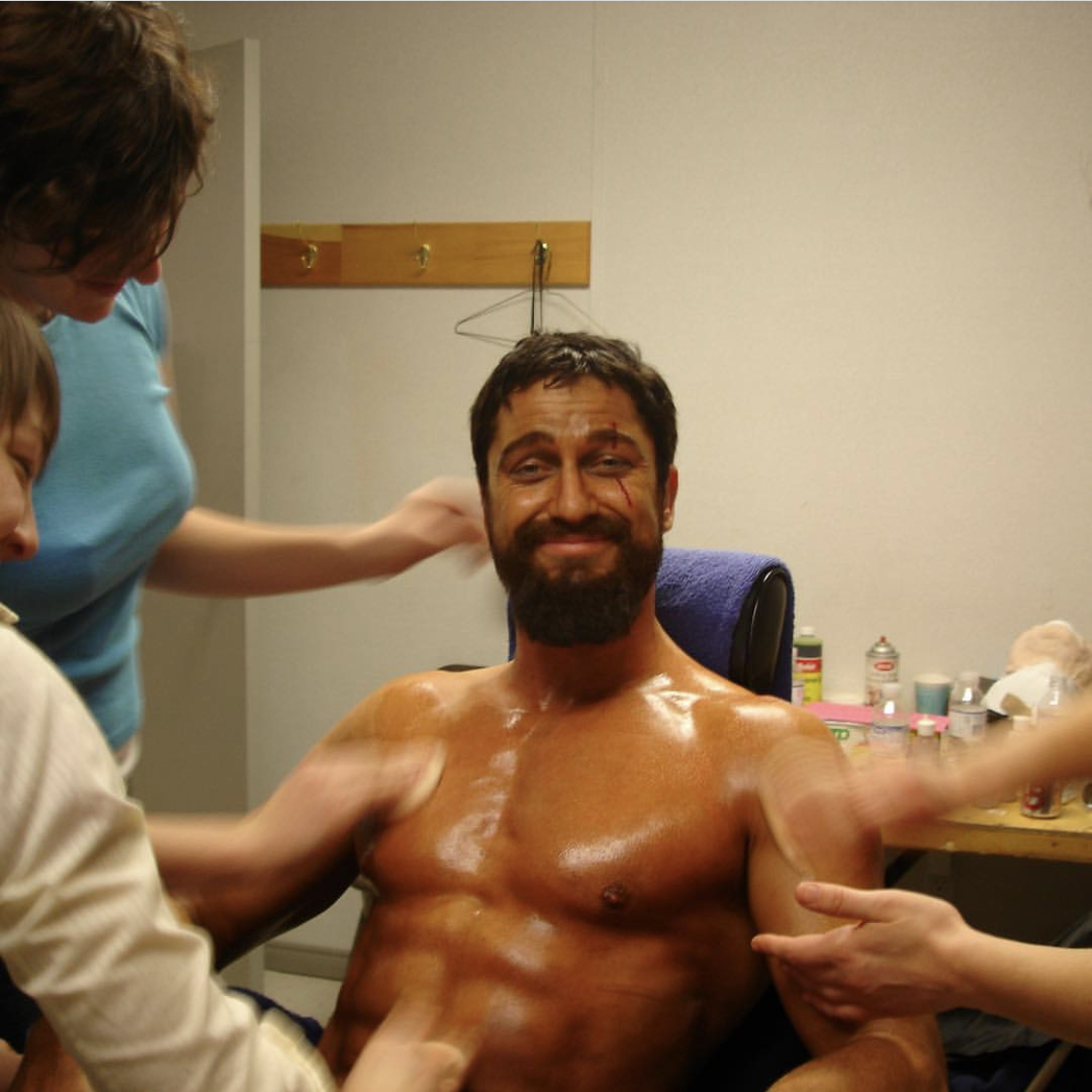 История этой картины... в конце каждого дня мне приходилось снимать грим с тела Джерарда Батлера и кусочки бороды. После нескольких месяцев съемок, в этот день как раз перед рождественскими каникулами, Джерри уезжал на следующий день на каникулы, и я подумала попросить нескольких визажистов помочь мне ускорить процесс... это выражение стоит тысячи слов! Люблю тебя, Джерри! Вы были почтительны, скромны, забавны, щедры и доступны для всей команды! У тебя прекрасная душа и большое сердце!