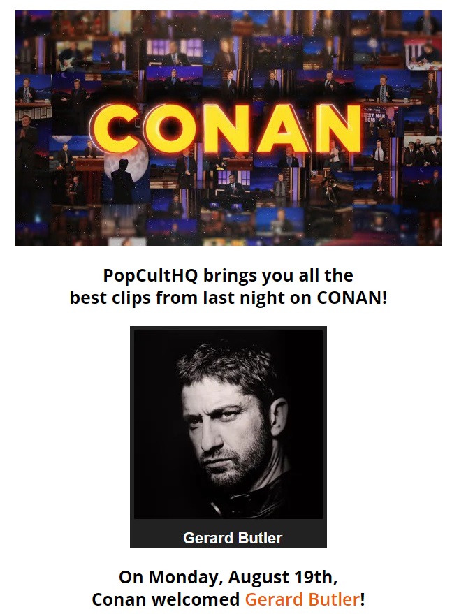 Вчера вечером в команде Coco w / Conan O'Brien( 8/19/19): Джерард Батлер