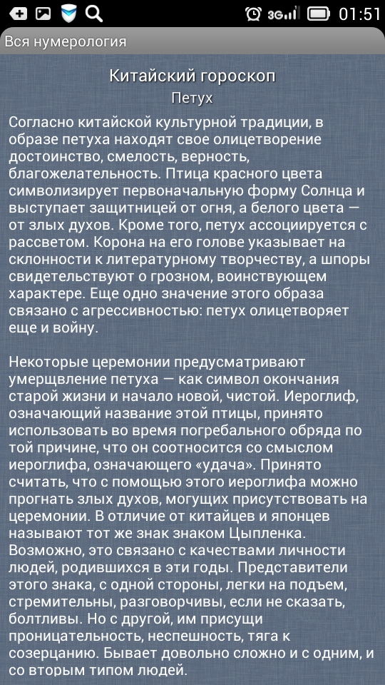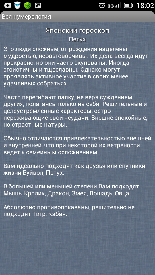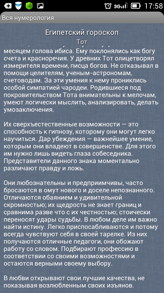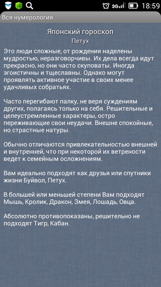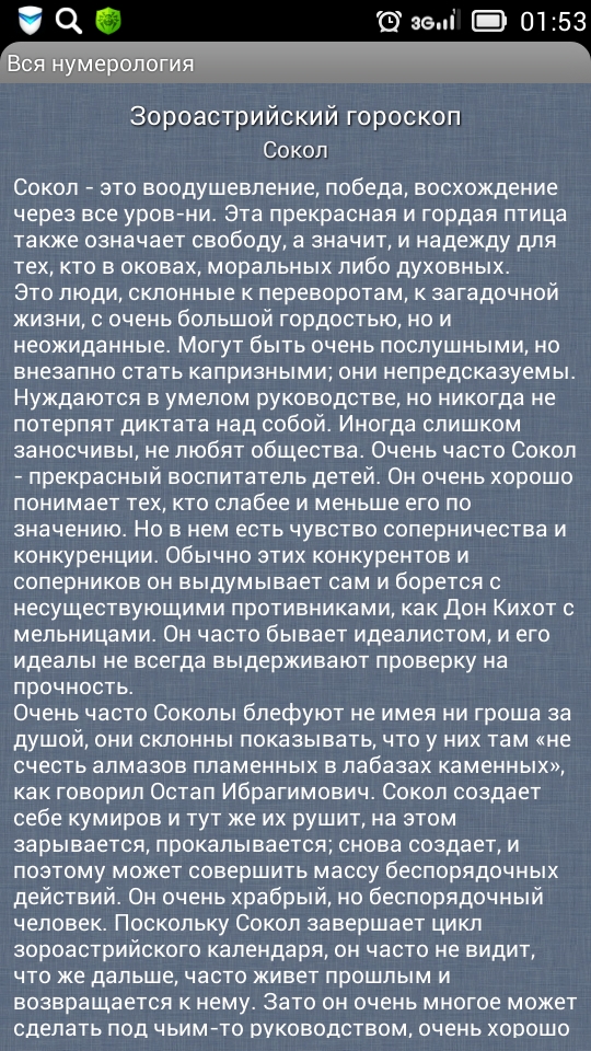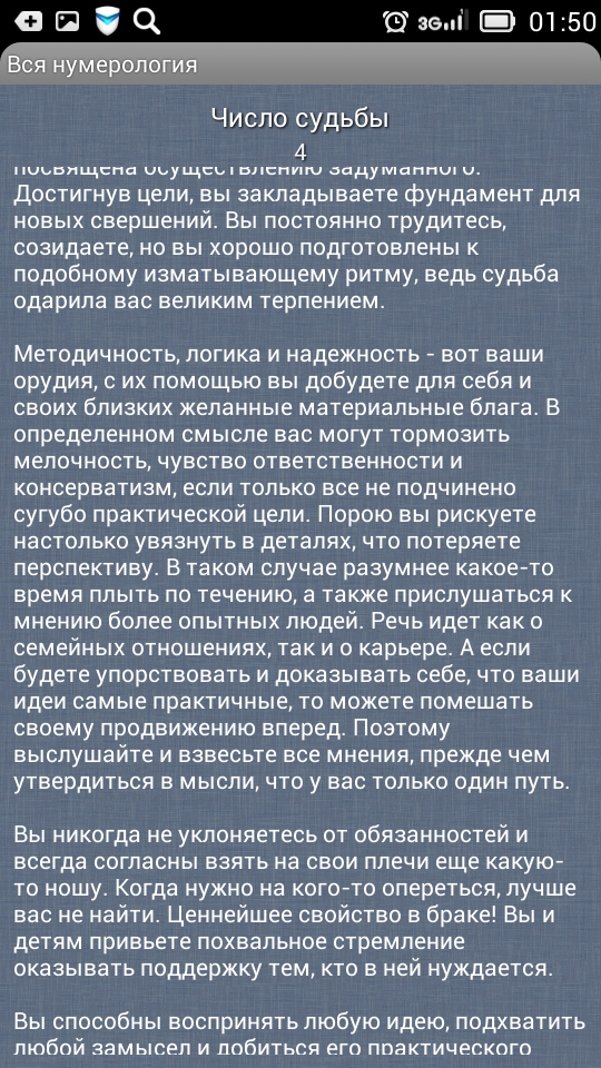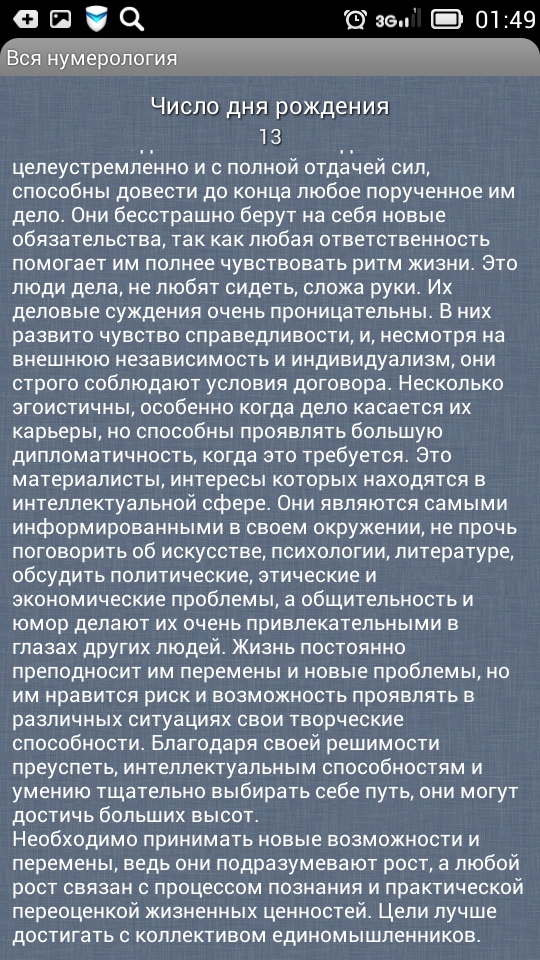 Девочки, я скачала себе приложение для смартфона "Вся нумерология" (вот об этой программе http://top-android.org/programs/5604-vsya-numerologiya/) ввела в нее данные о себе и своих родственниках (имя (кириллицей) и дату рождения) и все гороскопы и характеристики сошлись очень точно! (так что думаю эта программа дает верную информацию) :wink: Я ввела имя Жерард (так как английской G соответствует наша Ж, да и например имя Gerard по французски будет Жерар (тоже Ж), так что думаю не будет ошибкой написание Жерард) и его дату 13.11. 1969 г. вот что получилось, я сделала скрины. Мы с Roza84 подумали, что вы тоже должны это прочитать! :) ОЧЕНЬ ИНТЕРЕСНО! :D