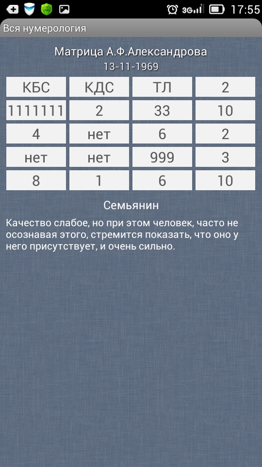 Продолжаю выкладывать скриншоты из программы "Вся нумерология" :D