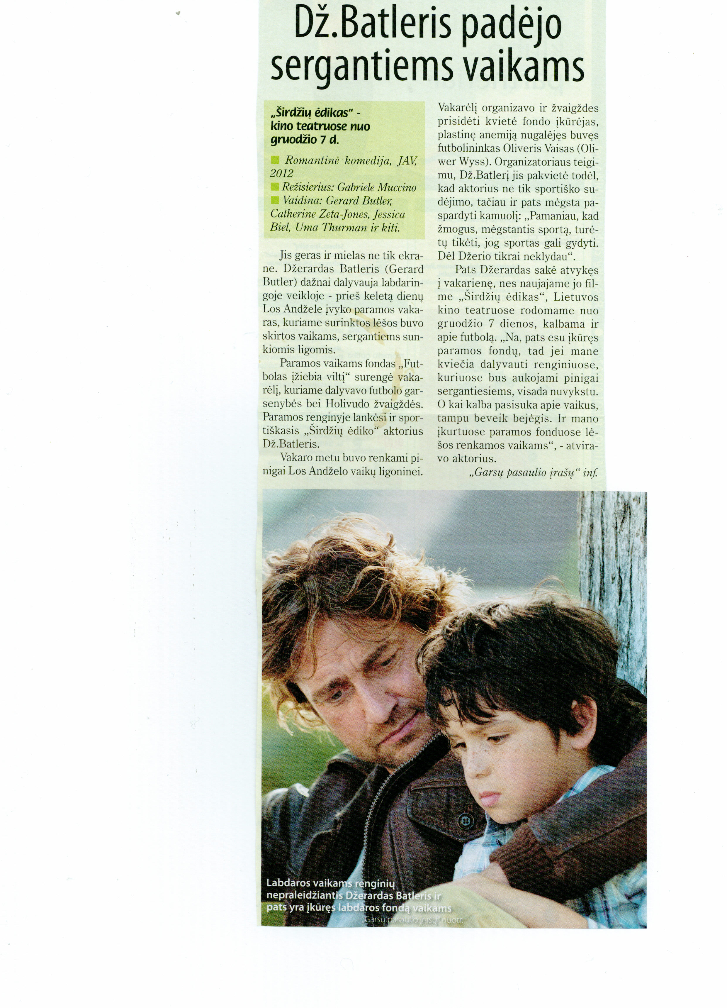 Сам Джерард говорил, что прибыл на вечер потому, что в его новом фильме „Мужчина нарасхват“,в кинотеатрах Литвы показываемого с 7 декабря, тоже говорится про футбол.