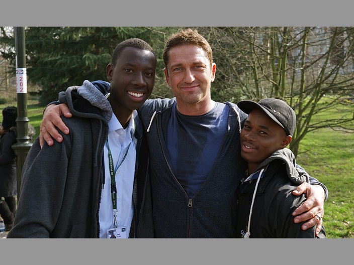 На сьёмках Падения Лондона обучались и стажировались сироты из Руанды и Южной Африки.