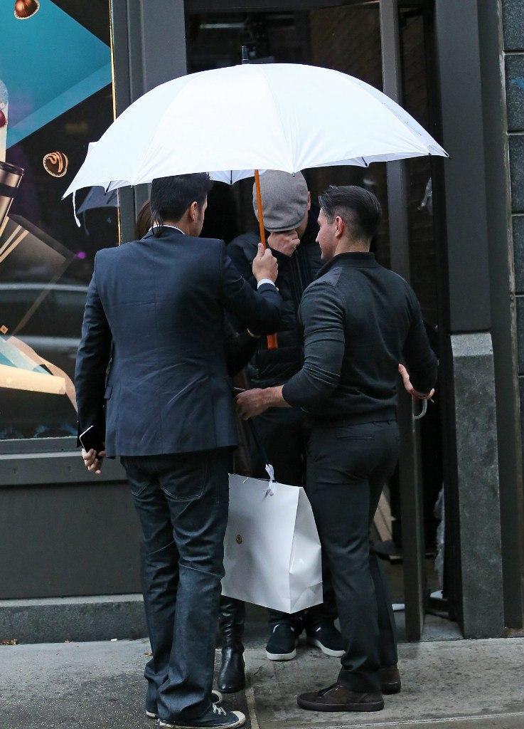 Свежие фото: Леонардо был замечен в магазине "Moncler" в Нью-Йорке (28 ноября). Актер прикупил себе зимнюю куртку. На выходе ДиКаприо заметил папарацци и воспользовался одним из своих любимых способов маскировки - с помощью зонтика.