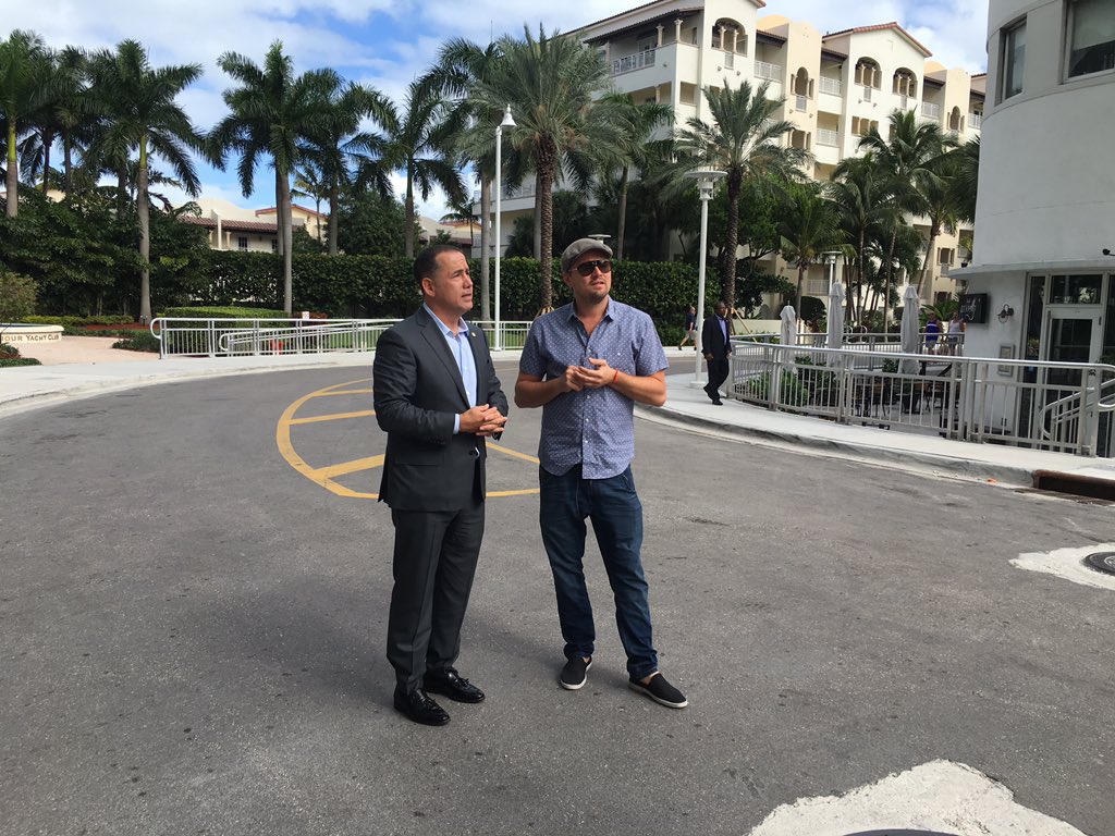 Лео берет интервью у мэра Майами Филипа Левина для своего нового документального проекта об экологии (29 ноября 2015).